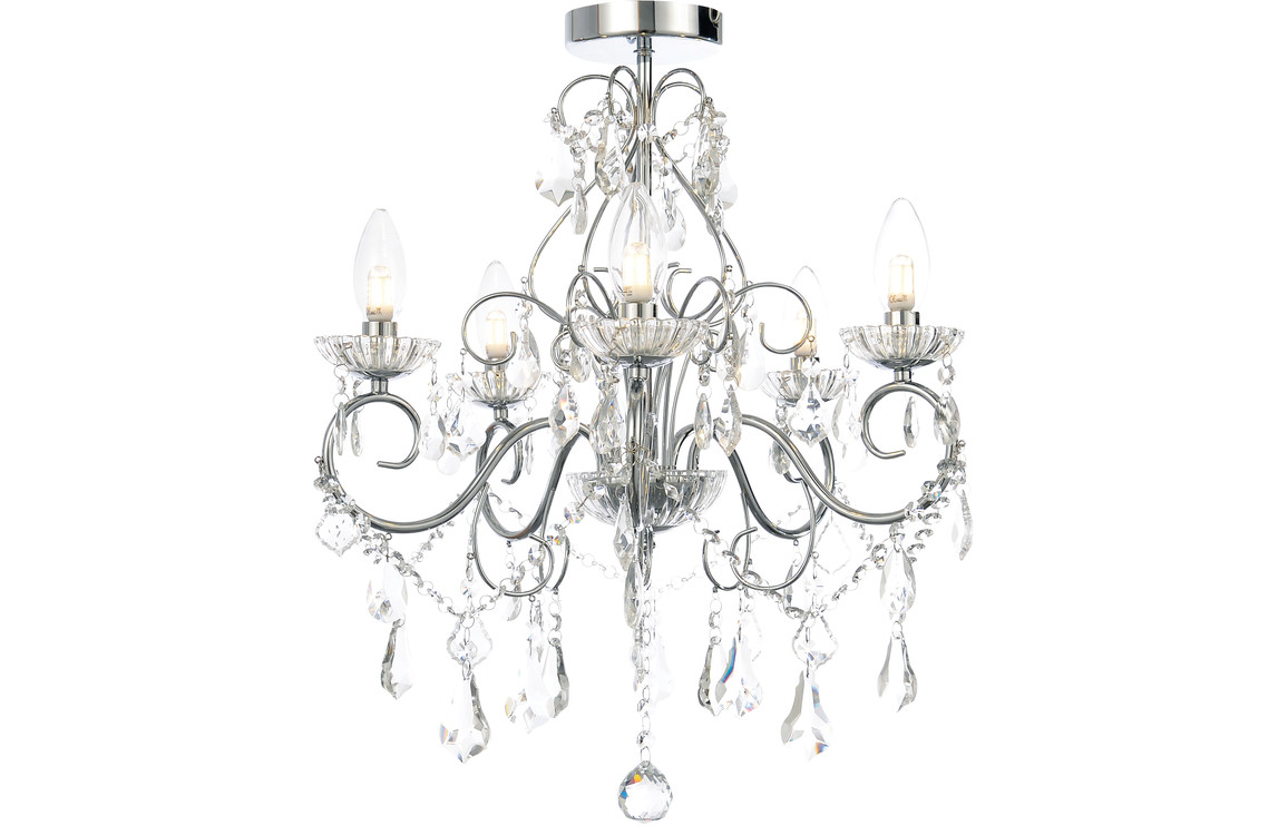 Introducing the 5 Light Chandelier – a beautiful addition to any bathroom produced by Bamstore. This chandelier is made from silver and has a sleek, modern design that will complement any décor. It comes with a 1 year warranty and is IP44 rated, making it safe for use in damp areas such as bathrooms. Plus, it doesn’t include bulbs so you can choose the perfect ones to match your space. Whether you’re looking for a new light fixture for your own home or searching for the perfect gift for someone special, this chandelier is sure to please. Order yours today and enjoy hassle-free elegance in your home for years to come!