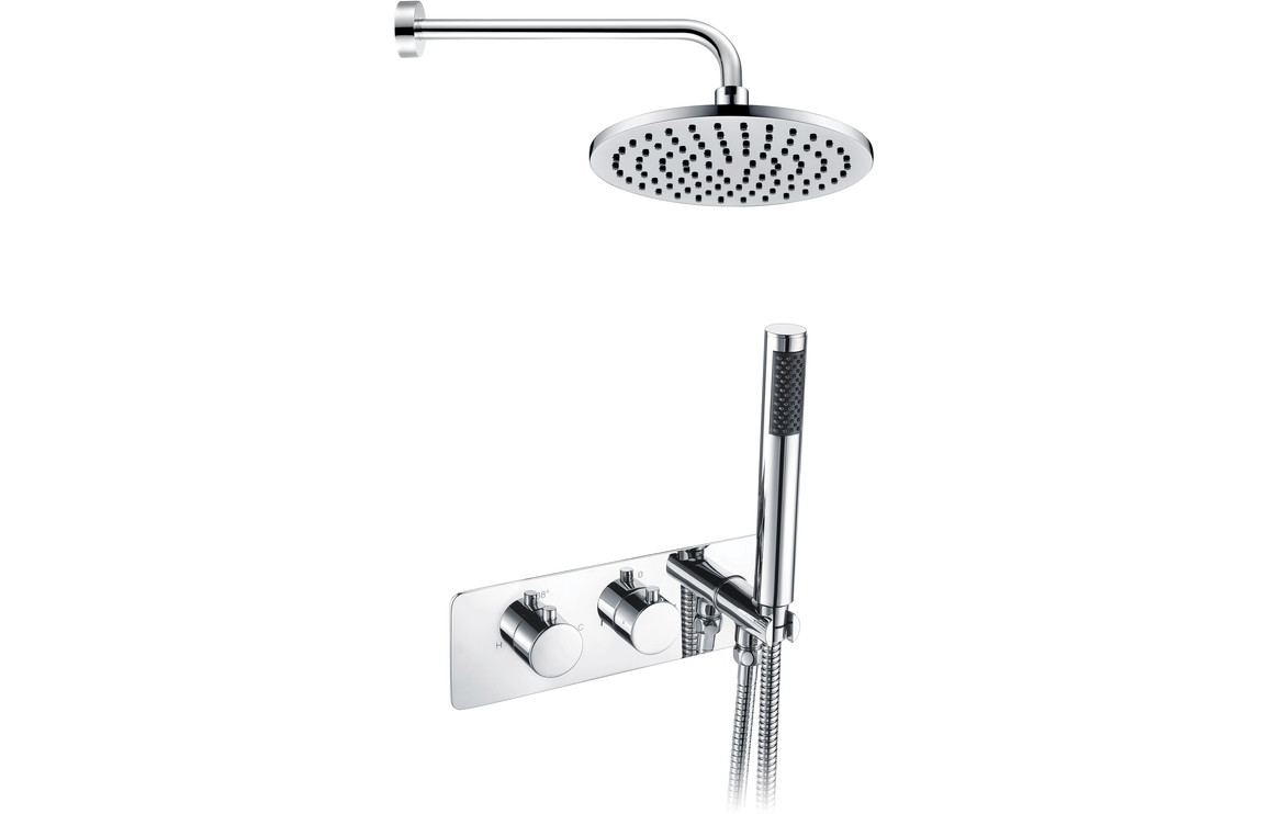 Round Shower Pack 4 – Lexi Twin Two Outlet with Handset & ABS Overhead Shower with 10 Years Guarantee on Body and Finish 3 Years for Parts Guarantee. Two outlet thermostatic mixer by Bamstore