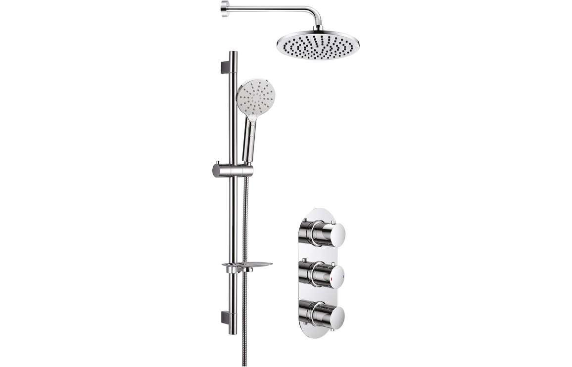 Round Shower Pack 7 – Circa Triple Two Outlet & Riser/Overhead Kit with 10 Years Guarantee on Body and Finish 3 Years for Parts Guarantee. Two outlet thermostatic mixer by Bamstore