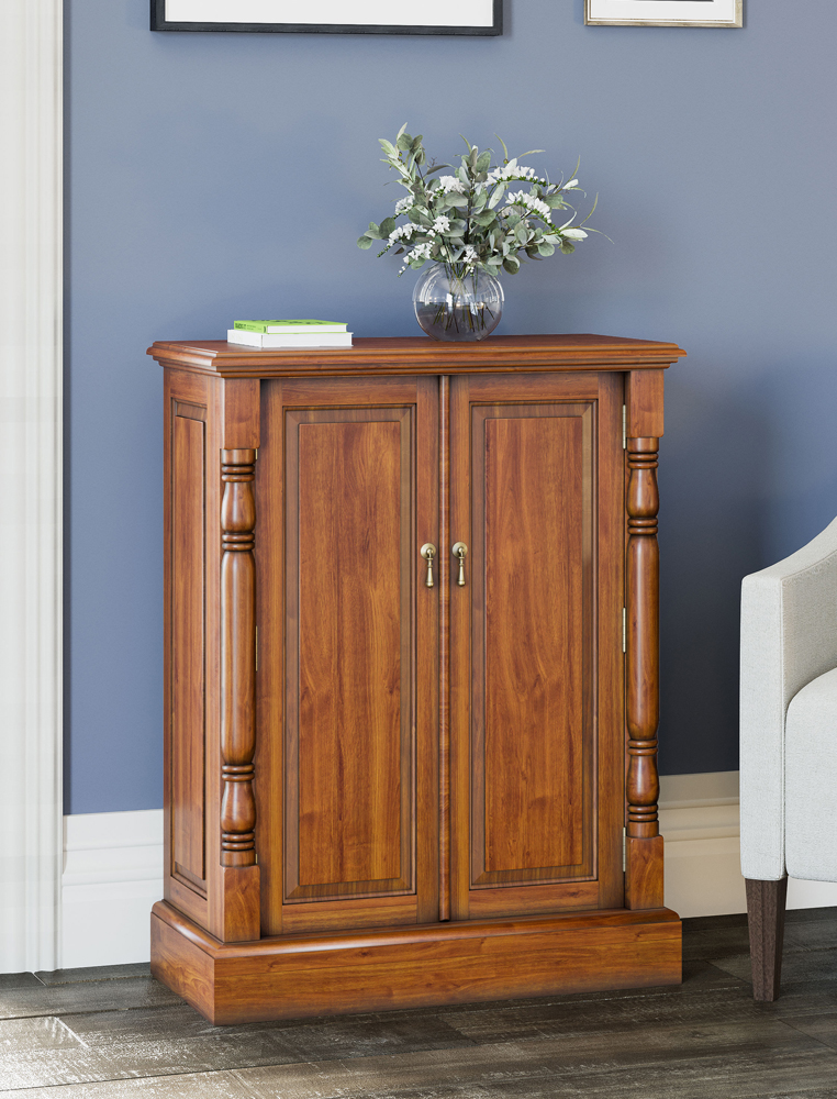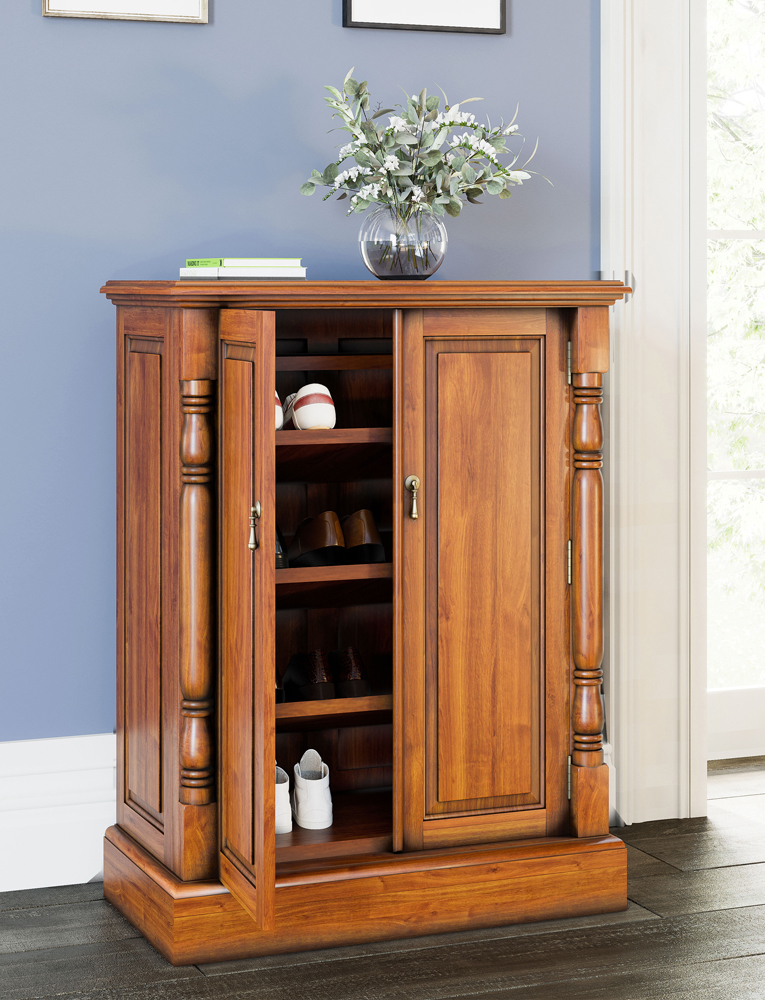 - La Reine, Tea Brown, Light Brown antique distressed mahogany shoe storage cabinet. Stylish solutions for traditional living.