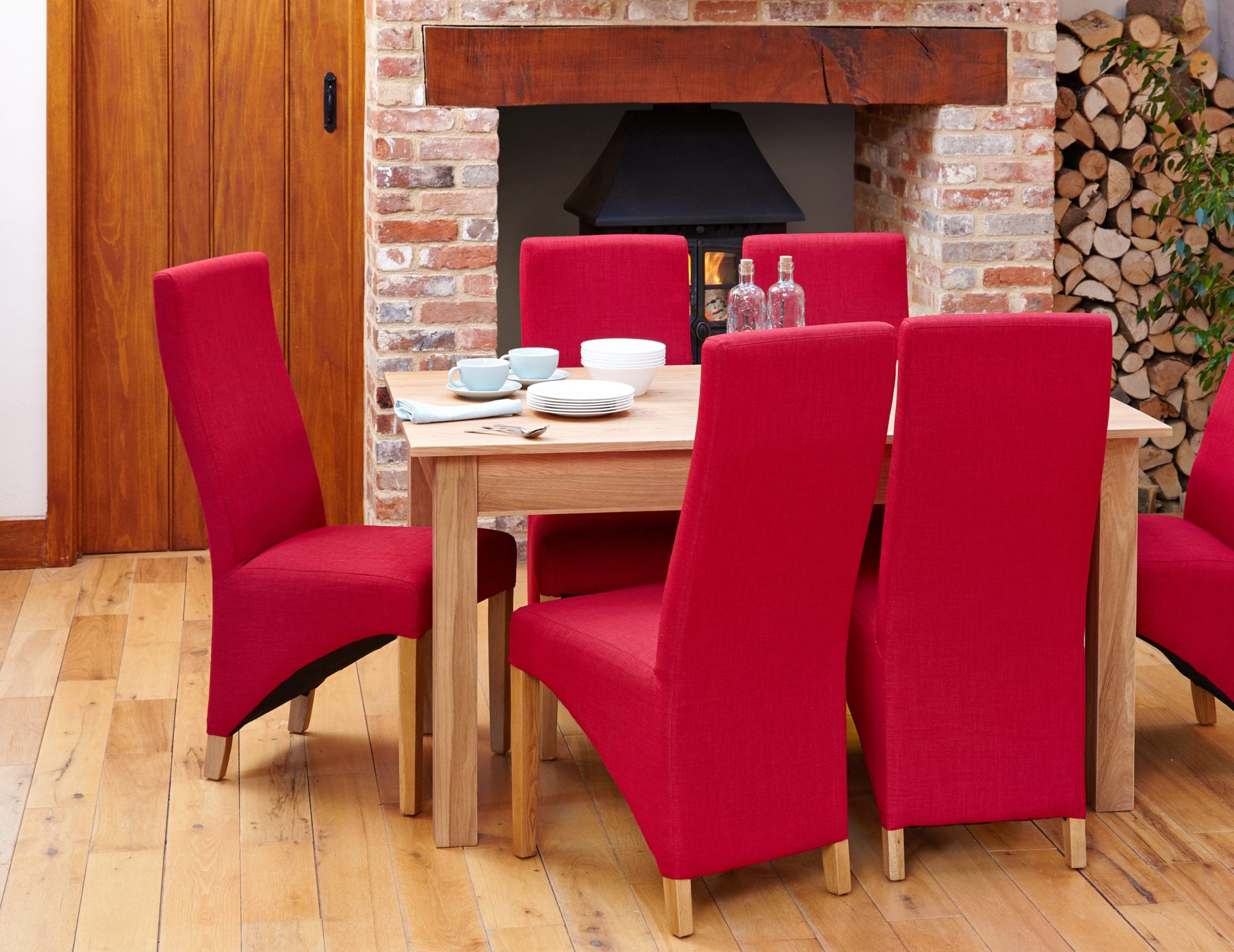 - A set of two chic upholstered contemporary dining chairs in ‘Red’ fabric.
