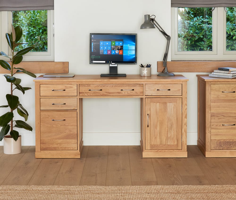 Enhance your workspace with the elegance of the Mobel Oak Twin Pedestal Computer Desk.