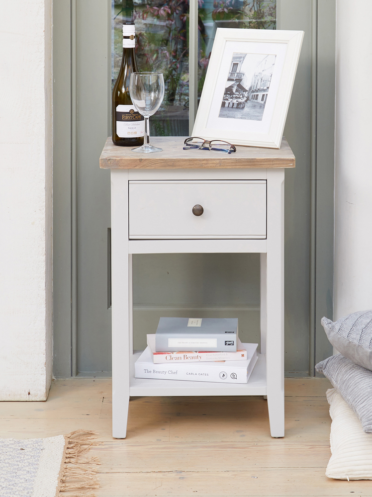 Add a touch of elegance and practicality to your home with our Signature One Drawer Lamp Table. Crafted with attention to detail and featuring exquisite hand-distressing on the grey limed tops, this piece is sure to make a statement in any room. Made with solid wood and painted in a modern grey finish, this lamp table is not only stylish but also durable and long-lasting. Enjoy free delivery and 14 day returns, plus a FIVE YEAR warranty for added peace of mind. Make a statement in your home with this timeless piece from Bathrooms & More Store.