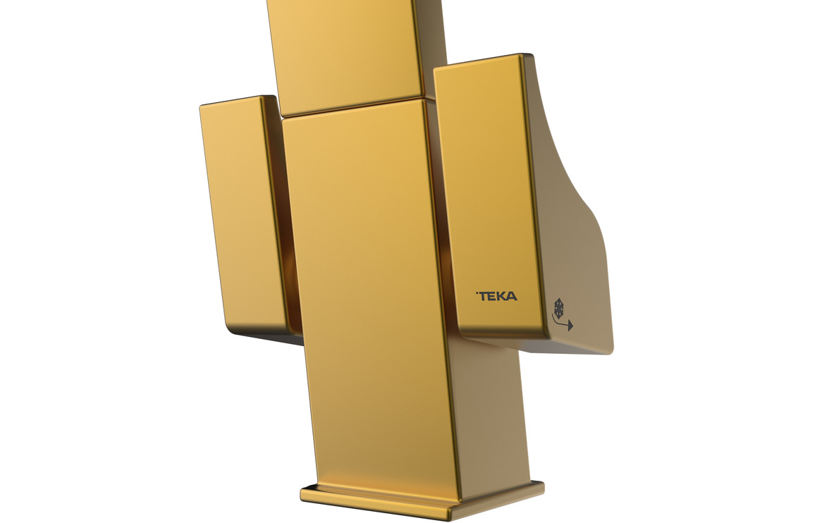 A contemporary Teka ICT 915 tap in brass with a polished finish