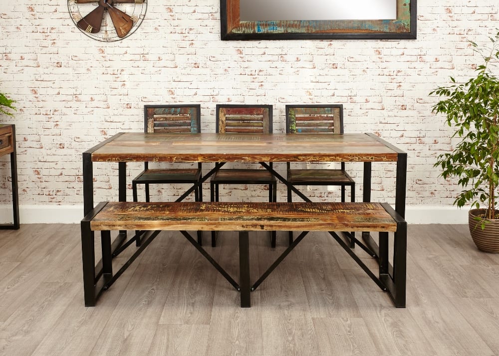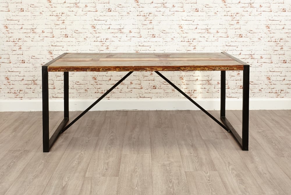 Introducing our Urban Chic Dining Table Large, a unique contemporary piece that adds a touch of urban edge to your dining space. Made from reclaimed wood salvaged from Southern India, each table is hand finished and truly one-of-a-kind. With a steel outer frame for structural rigidity and a resilient satin lacquer finish, this table is not only environmentally friendly but built to last a lifetime. Enjoy free delivery and 14 day returns when you order from Bathrooms & More Store in the UK.