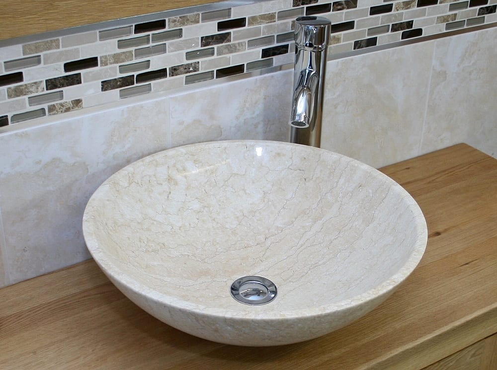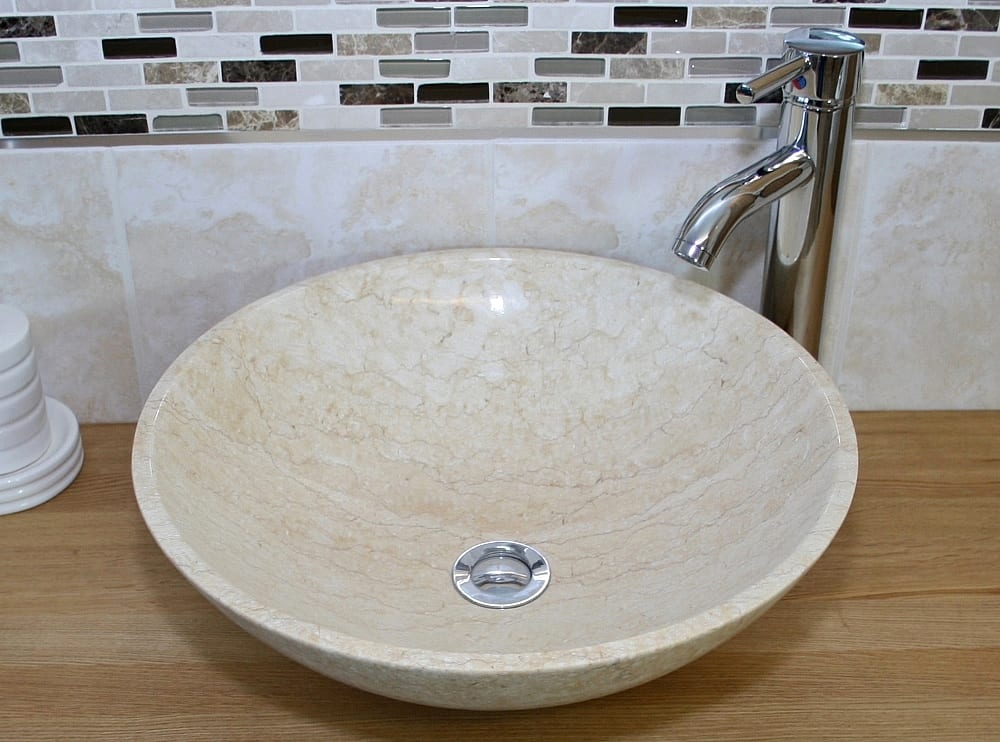 - This is a truly incredible and extremely heavy cream round marble basin.