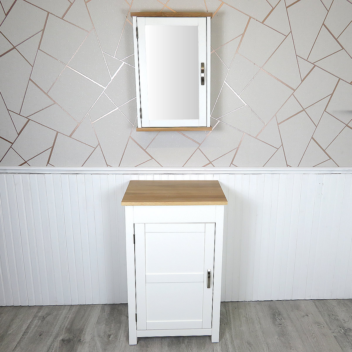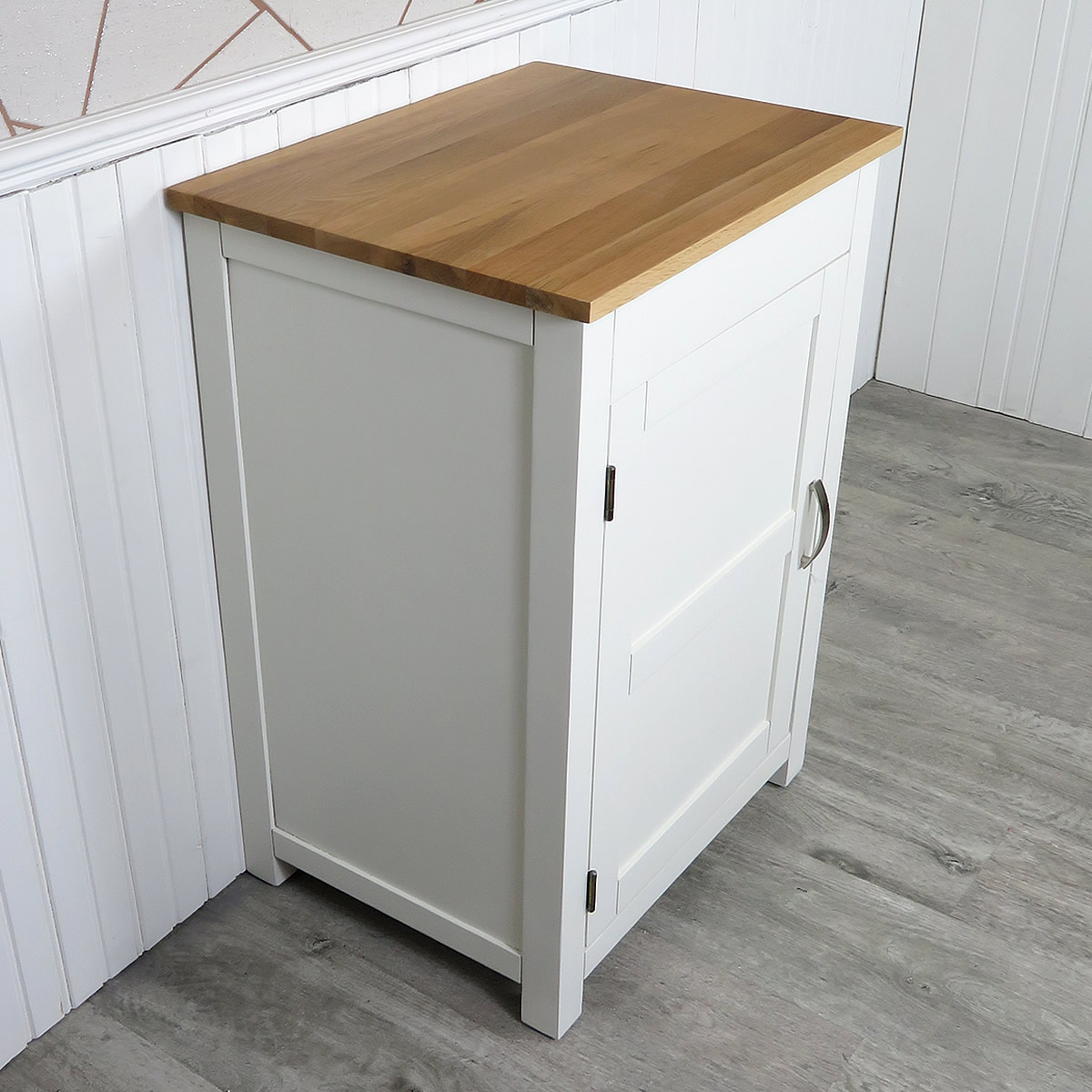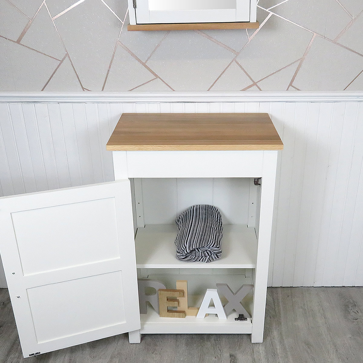 A superb contemporary designed hand crafted beautiful white painted compact bathroom vanity unit with a single useful cupboard with a height adjustable central shelf.