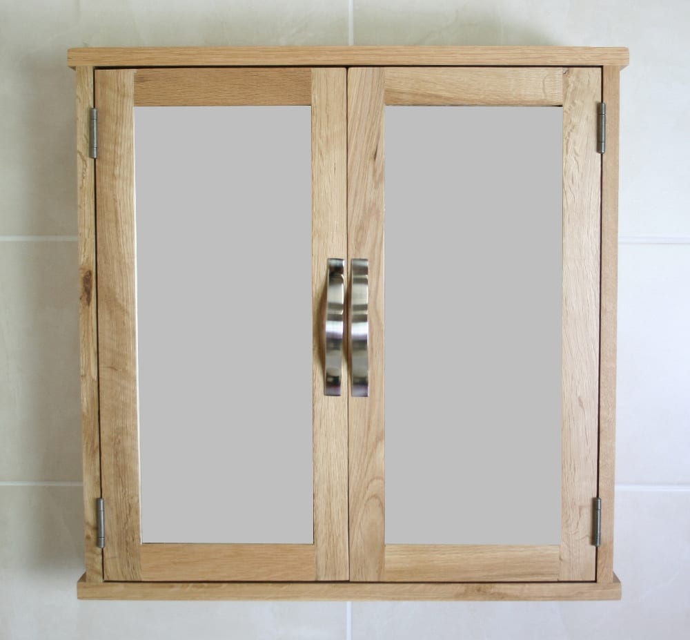 This truly beautiful contemporary slender wall mounted bathroom cupboard is constructed from 100% solid oak hard wood. It features a double mirror door and one internal central shelf which is height adjustable or removable. This unit would complement our matching bathroom vanity units perfectly.