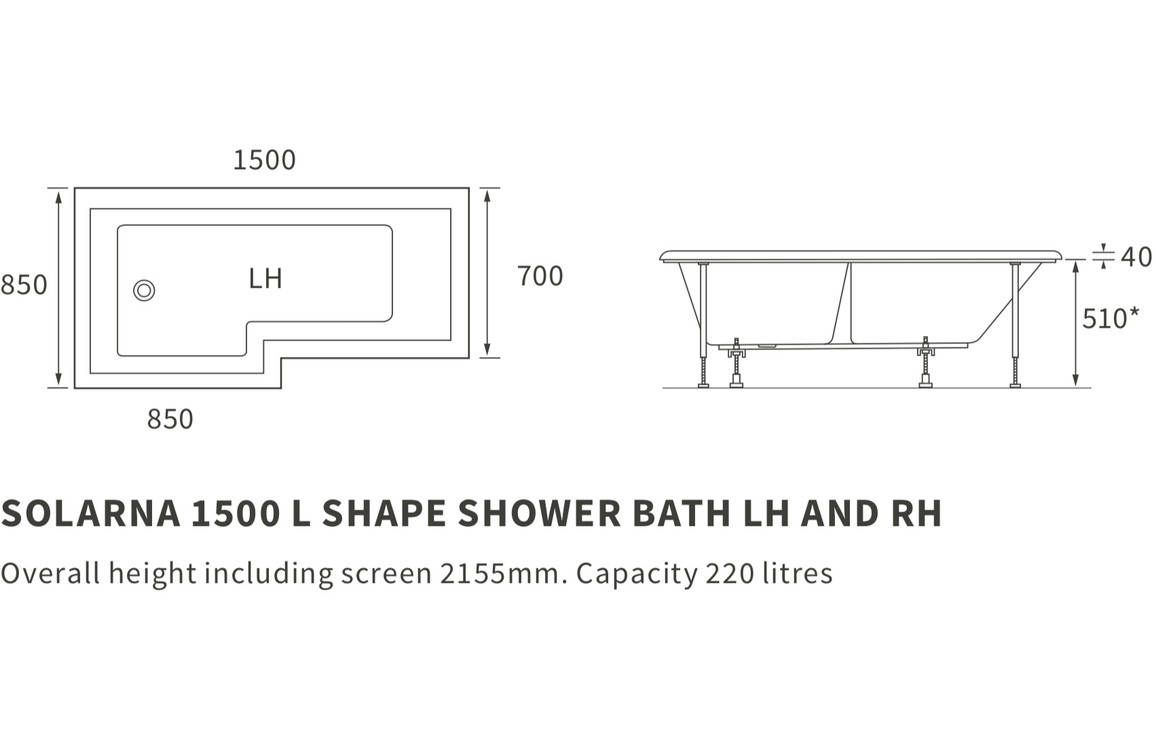 Dimensions: H 510 x W 700-850 x D 1700mm