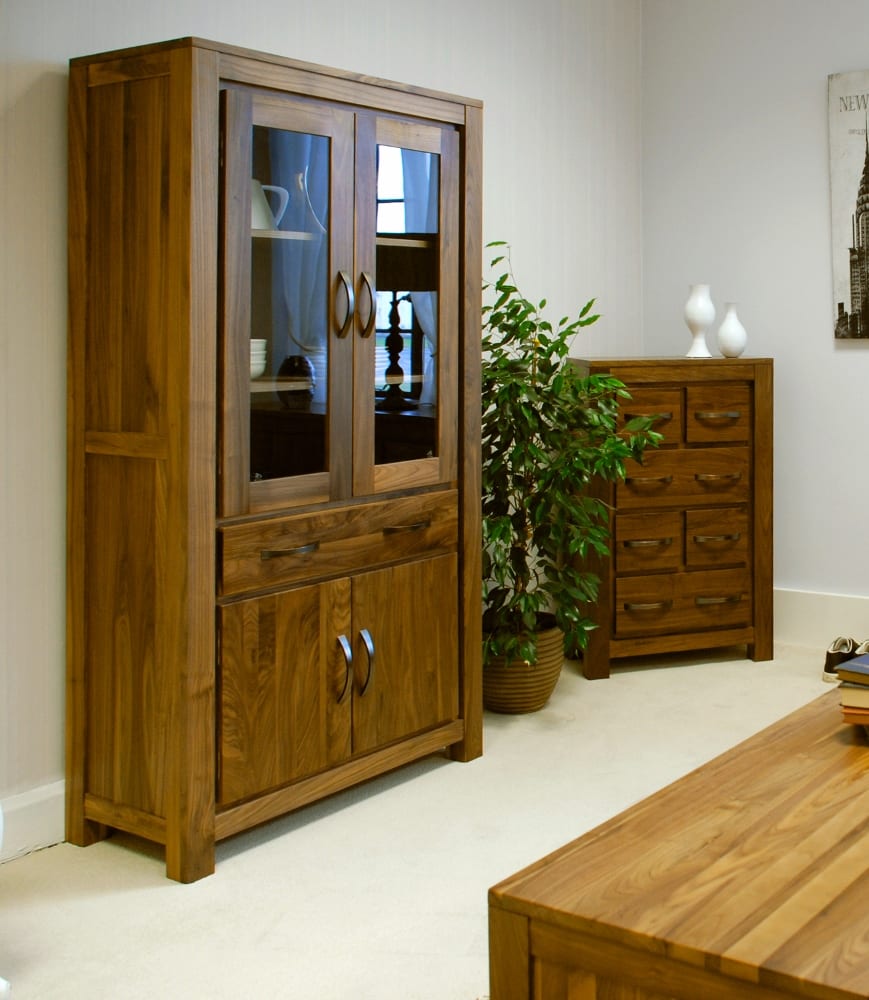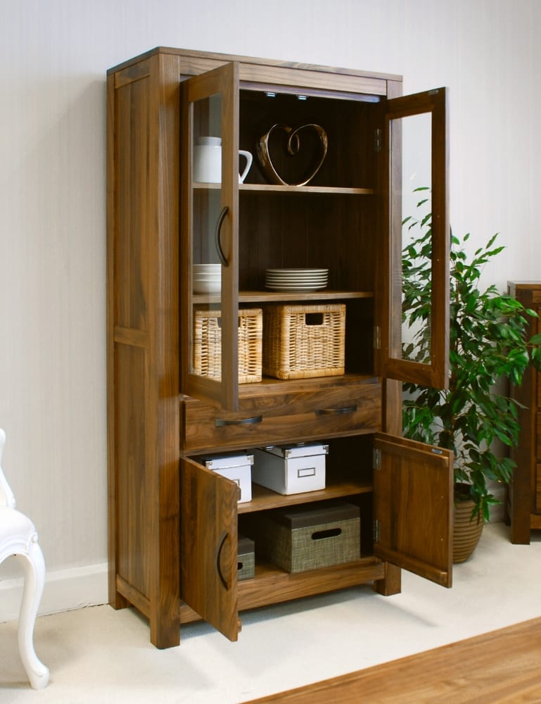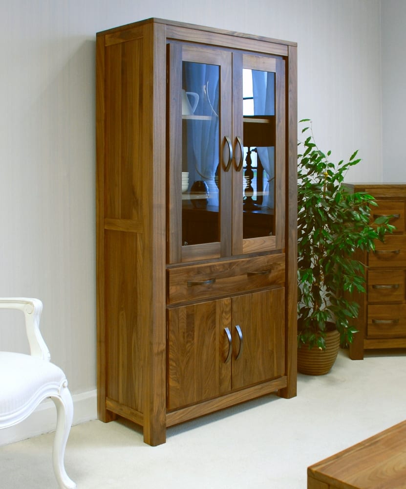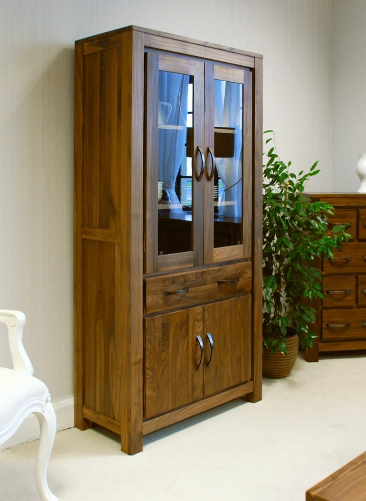 - This bookcase consists of a lower cupboard with removable shelf, one large drawer and a glazed upper with adjustable shelves.
