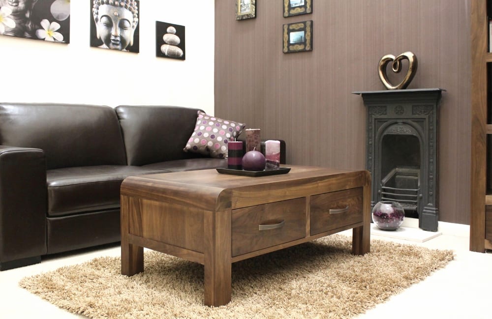 - Superb walnut coffee table with four drawers.