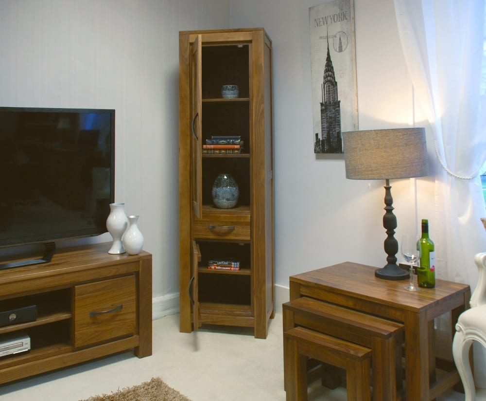 At the base of the bookcase is a small cupboard measuring H44 x W37 x D34cm and includes a removable shelf