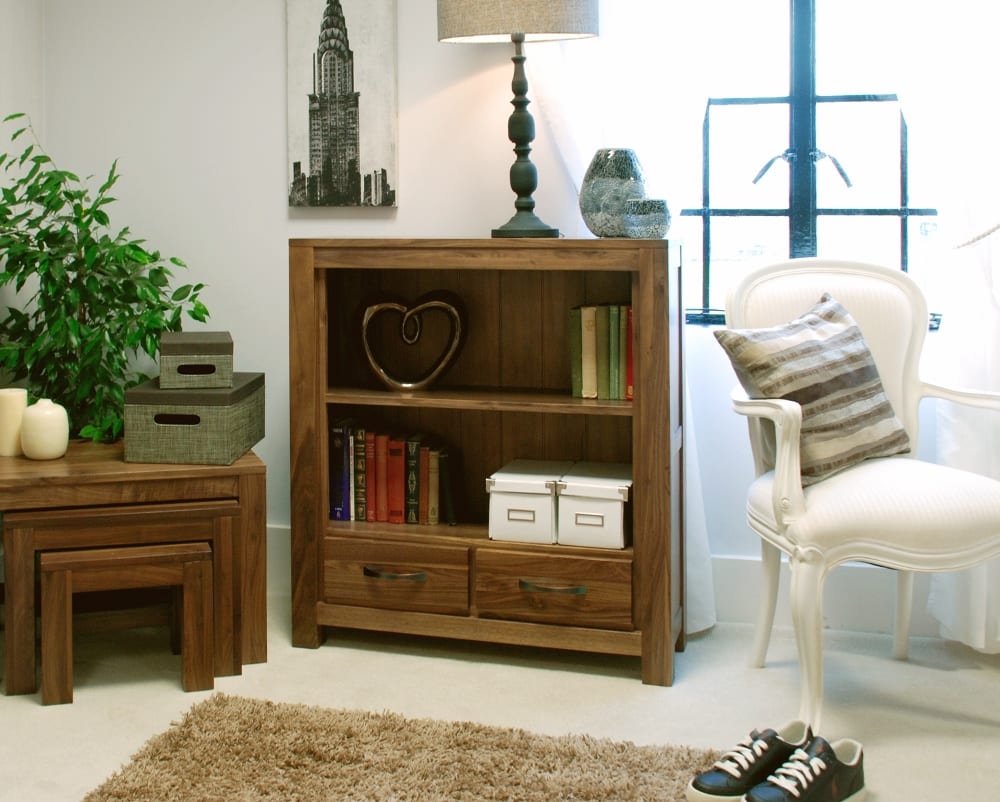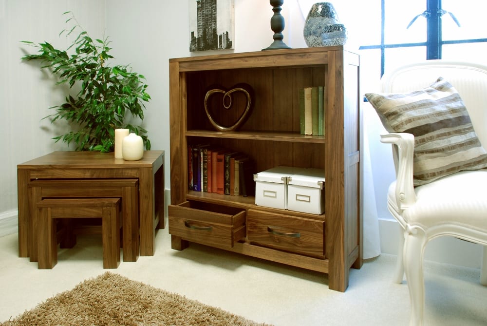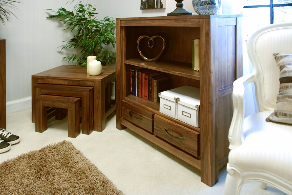 Elevate your living space with the Mayan Walnut Low Bookcase, now available at Bathrooms & More Store!