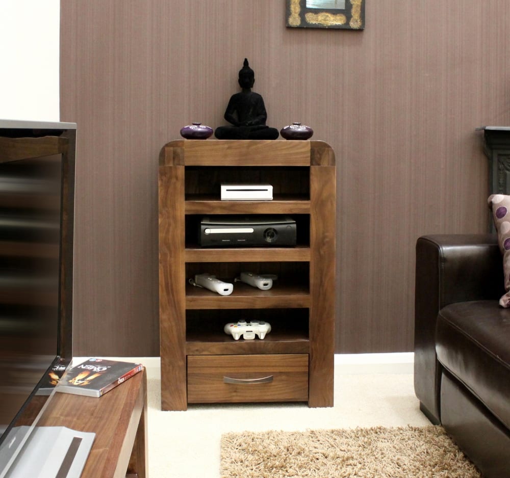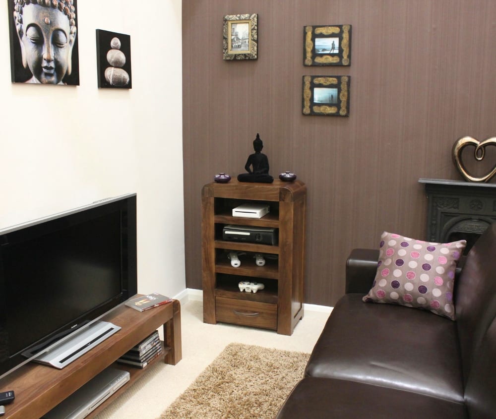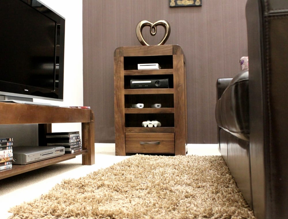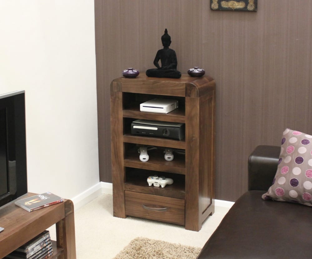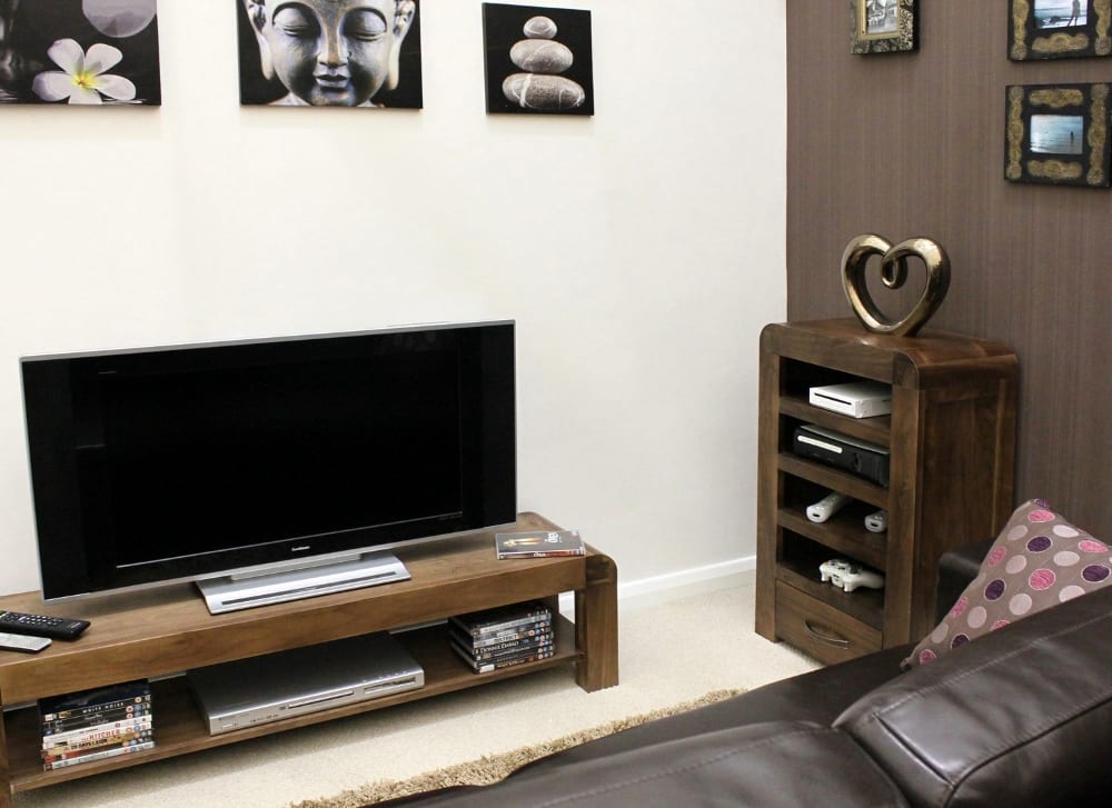 Enhance your living space with the Shiro Walnut Entertainment Unit from Bathrooms & More Store in the UK. Crafted from high-quality solid walnut, this entertainment cabinet is designed to store all your ancillary units for wall mounted televisions. With superb build quality and a resilient satin lacquer finish, this piece is built to last a lifetime. Enjoy free delivery and 14 day returns on this stunning addition to your home.