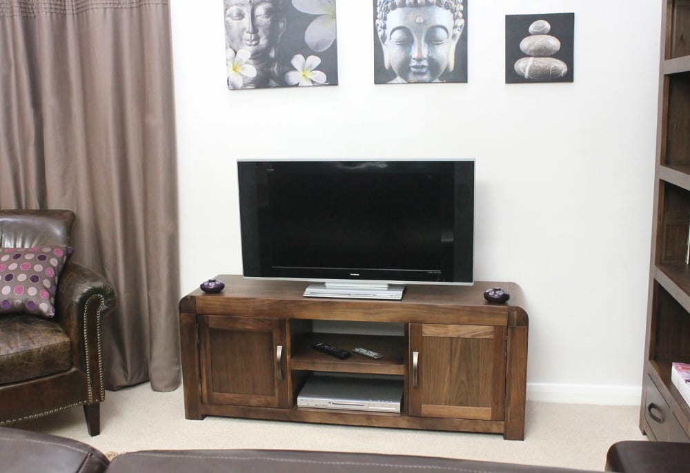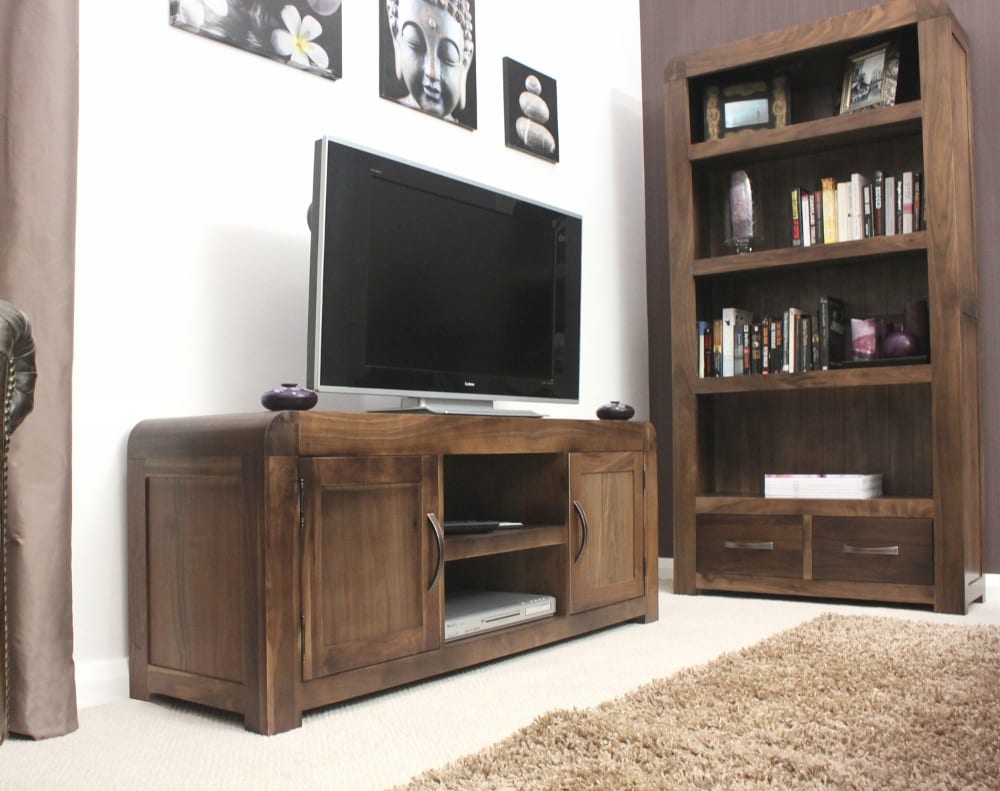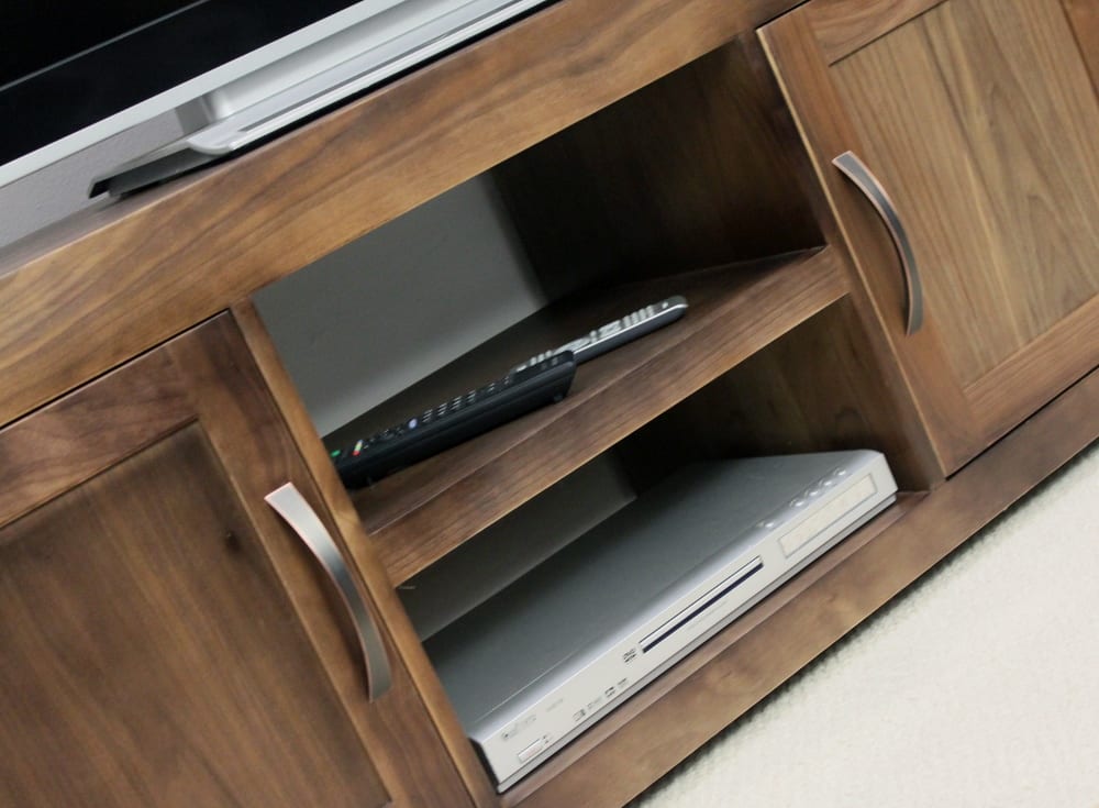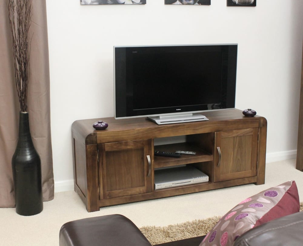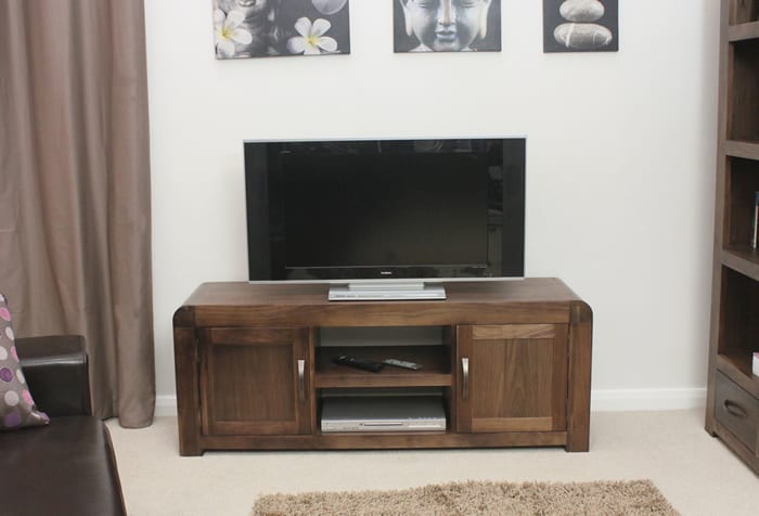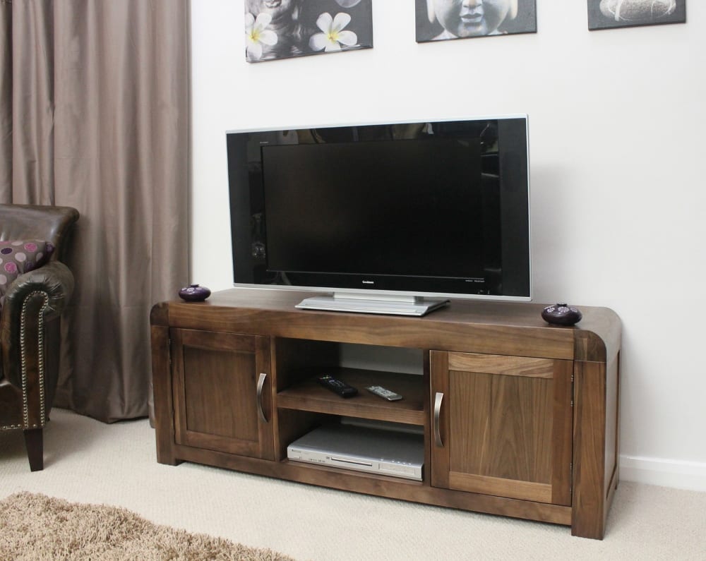 Introducing the Shiro Walnut Widescreen Television Cabinet from Bathrooms & More Store in the UK. Crafted from solid walnut with exceptional build quality, this stunning and unique piece of furniture offers a sleek and functional design for your home entertainment setup. With free delivery and 14-day returns, this television cabinet is the perfect choice for your living room. Features include fixed central shelf, two open shelves, two cupboards with adjustable shelves, and a resilient satin lacquer finish. No assembly required, this unit is ready to be the focal point of your living space. Part of the Baumhaus Shiro furniture collection, this television cabinet is built to last a lifetime.