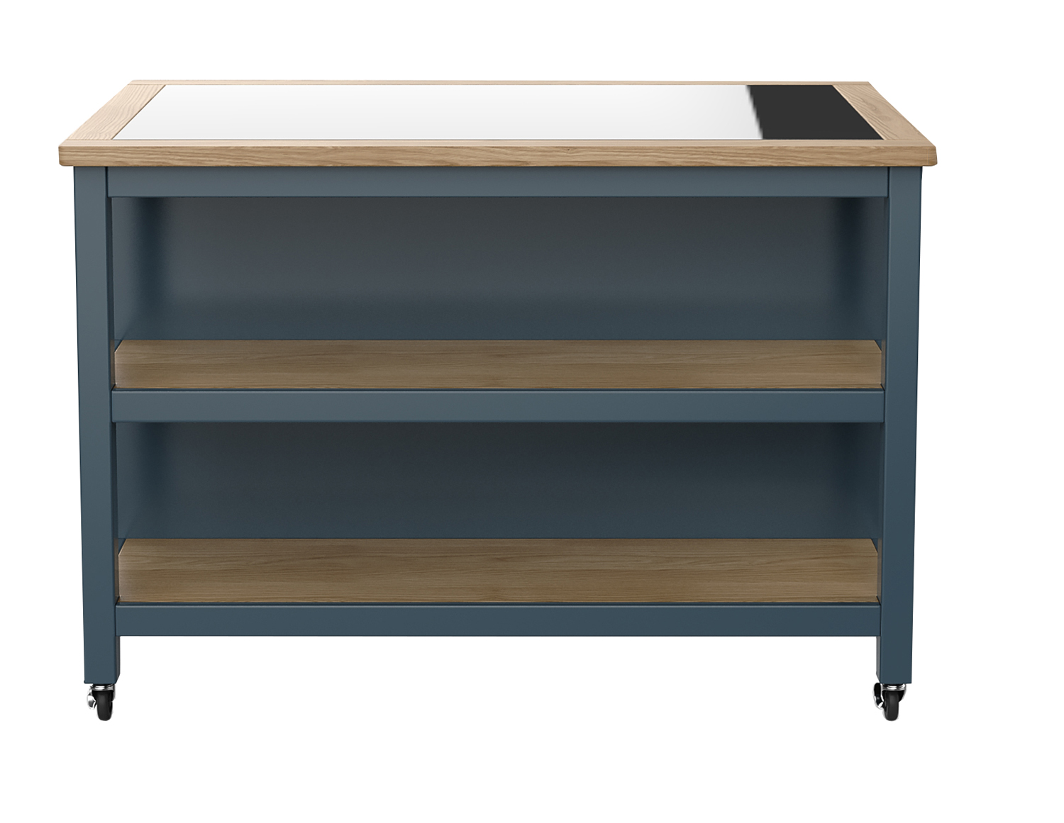 Transform your kitchen into a stylish and functional space with the Blue Open Kitchen Island from Bathrooms and More Store. Picture yourself sipping your morning coffee at the elegant breakfast bar, surrounded by the warmth of oak and the sophistication of a black granite top. Its spacious design not only complements your décor but also provides ample storage with two large oak shelves, making it perfect for both everyday use and entertaining guests. This high-end kitchen island is designed to last a lifetime, ensuring that it remains a focal point in your home for years to come.
