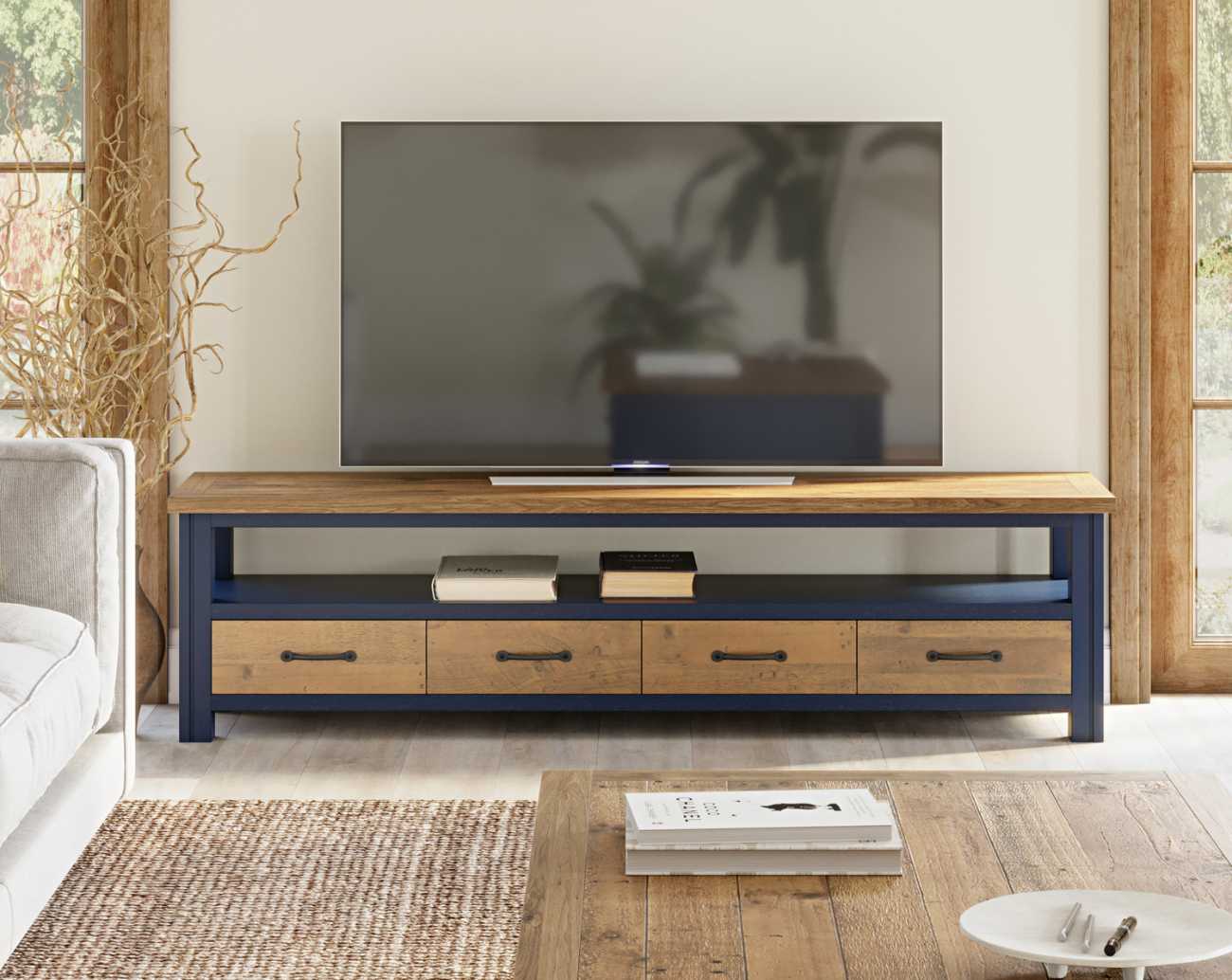 Introducing our stunning Splash of Blue Super Sized Widescreen Television cabinet, handcrafted with 100% reclaimed timber for a unique and characterful finish. This high-end collection is designed to last a lifetime and features four drawers and an open shelf for all your entertainment needs. With free delivery and 14 day returns, you can shop with confidence at Bathrooms & More Store in the UK.