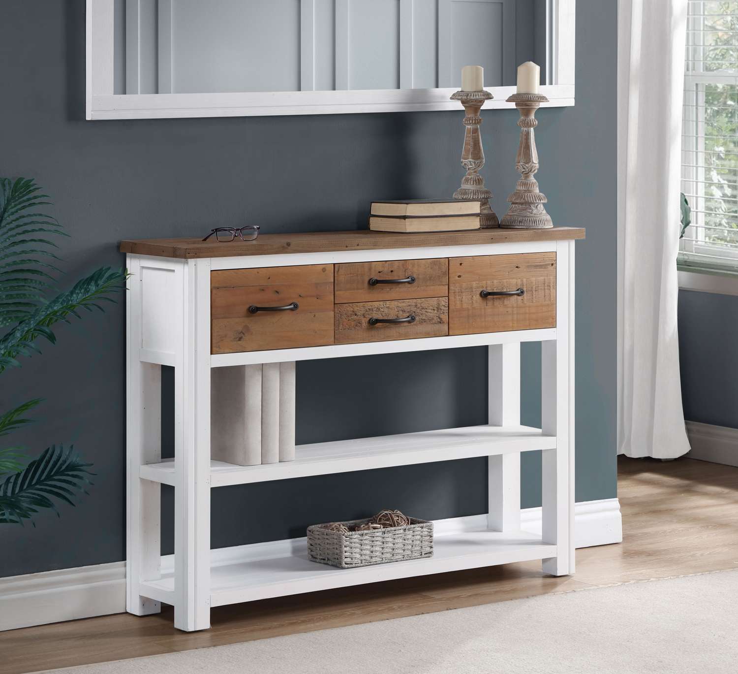 Introducing our stunning Splash of White Low Bookcase/Console, featuring a commitment to sustainability with 100% reclaimed timbers and handcrafted by skilled artisans. This high-end piece requires no assembly and offers four drawers, two fixed shelves, and comes with a FIVE YEAR warranty. Experience the beauty and character of this unique collection, designed to last a lifetime. Shop now for free delivery and 14 day returns.