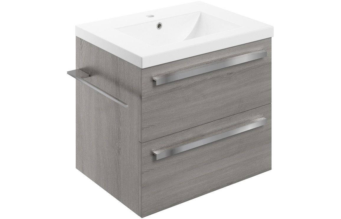 Monaco 615mm Wall Hung Basin Unit & Basin – Elm Grey comes with 5 Years Guarantee. In a Modular Modern style, Durable 16mm cabinet sides and back