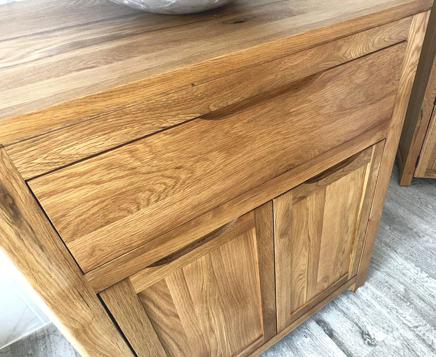 This exquisite single vanity unit, crafted from premium oak by skilled carpenters, promises durability and timeless elegance for any bathroom. Buyers can select from an array of beautiful white ceramic basins to complement their vanity, which includes a standard chromed mixer tap and is ready for installation upon delivery. We are dedicated to offering only the finest bathroom vanity options, and this oak vanity unit and basin combination is available at a highly competitive price, making it a standout choice for discerning customers.