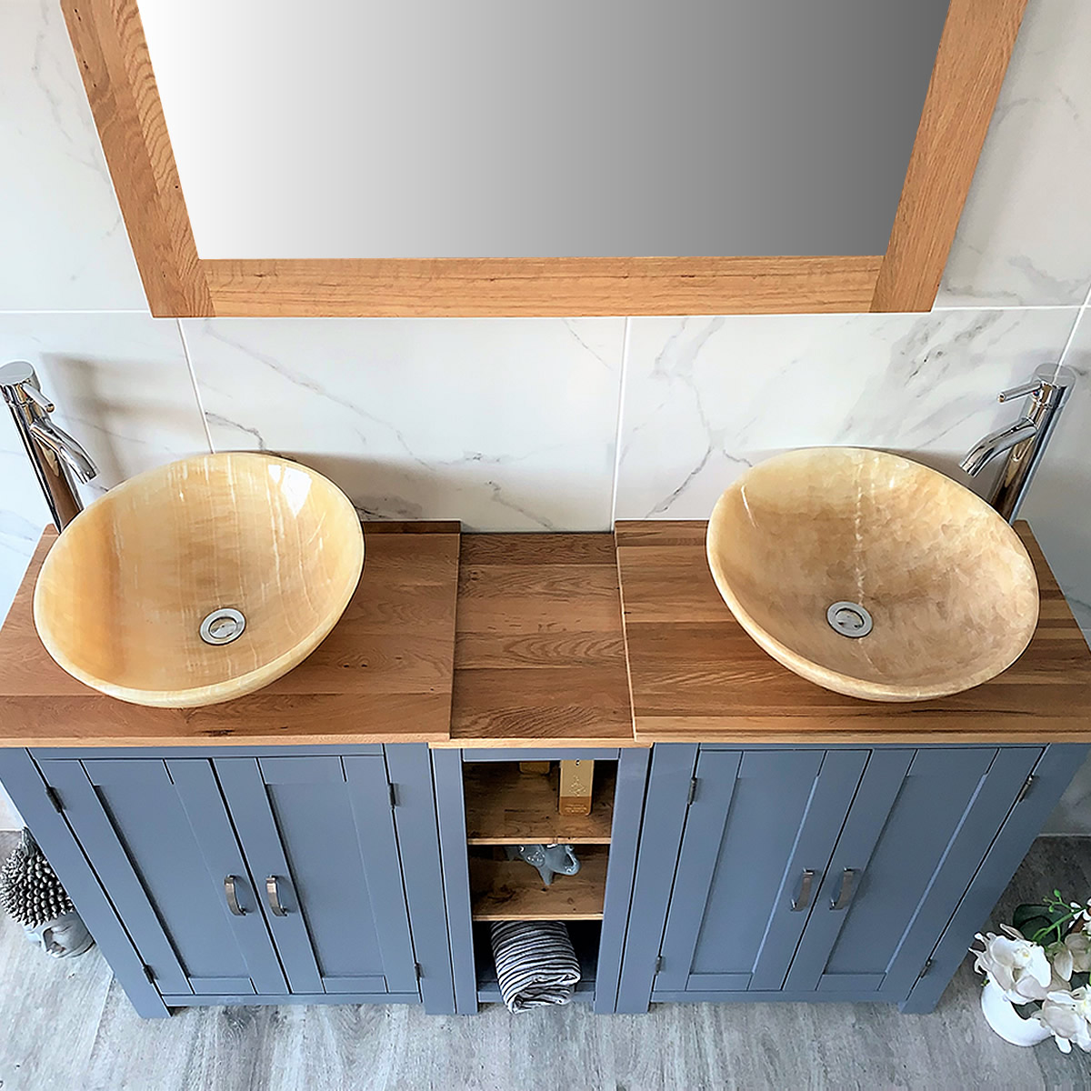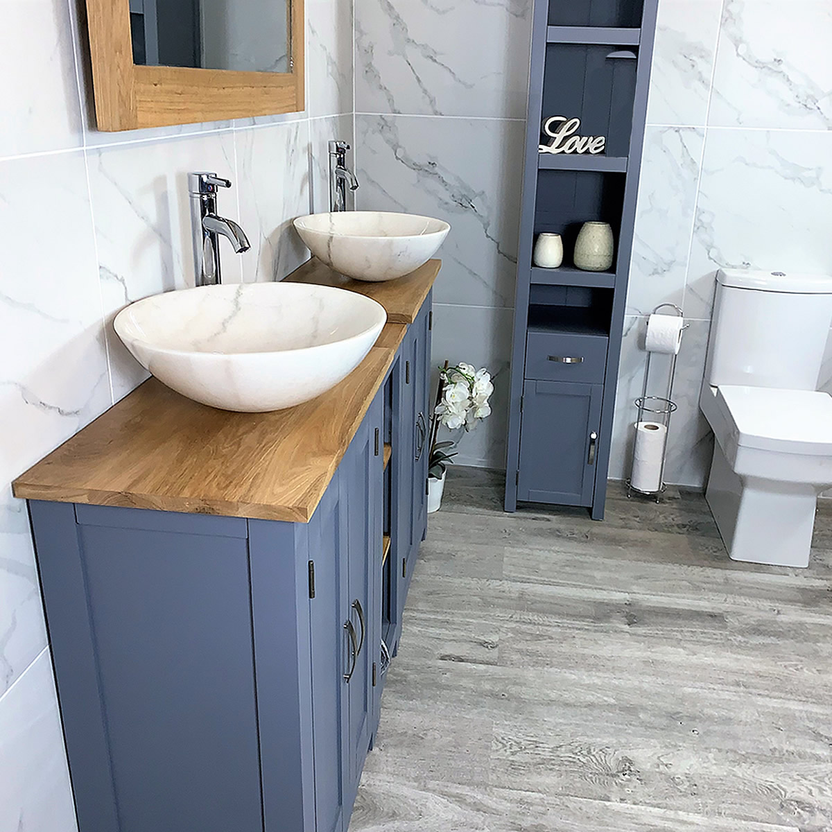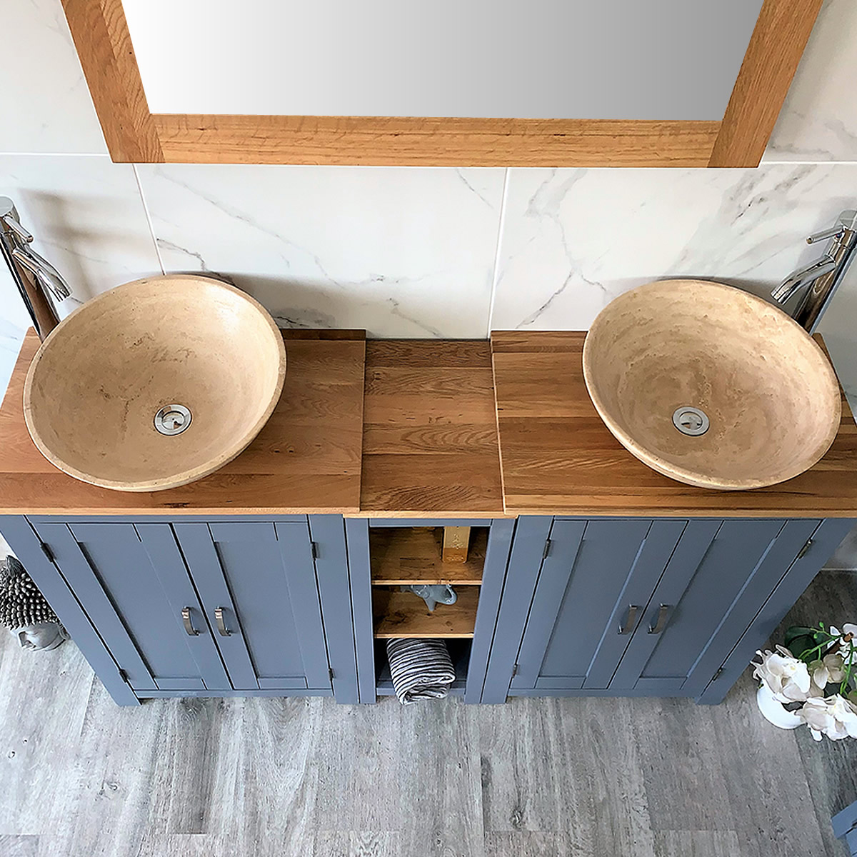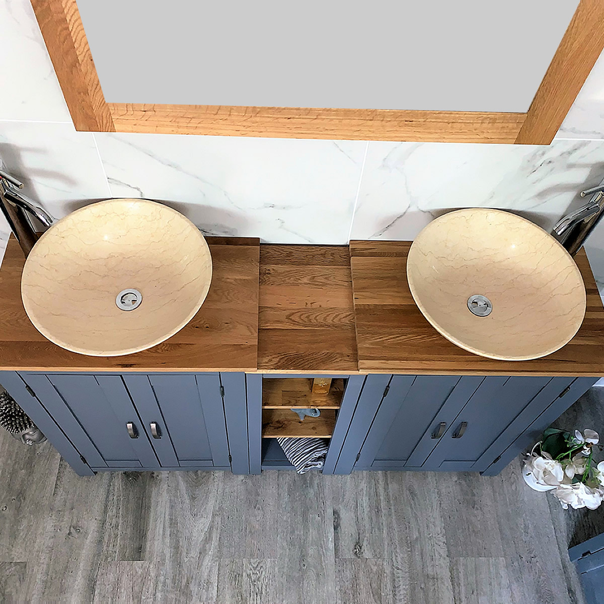 Double Basin Vanity Unit with Oak Top & Two White Marble Basins of your Choice