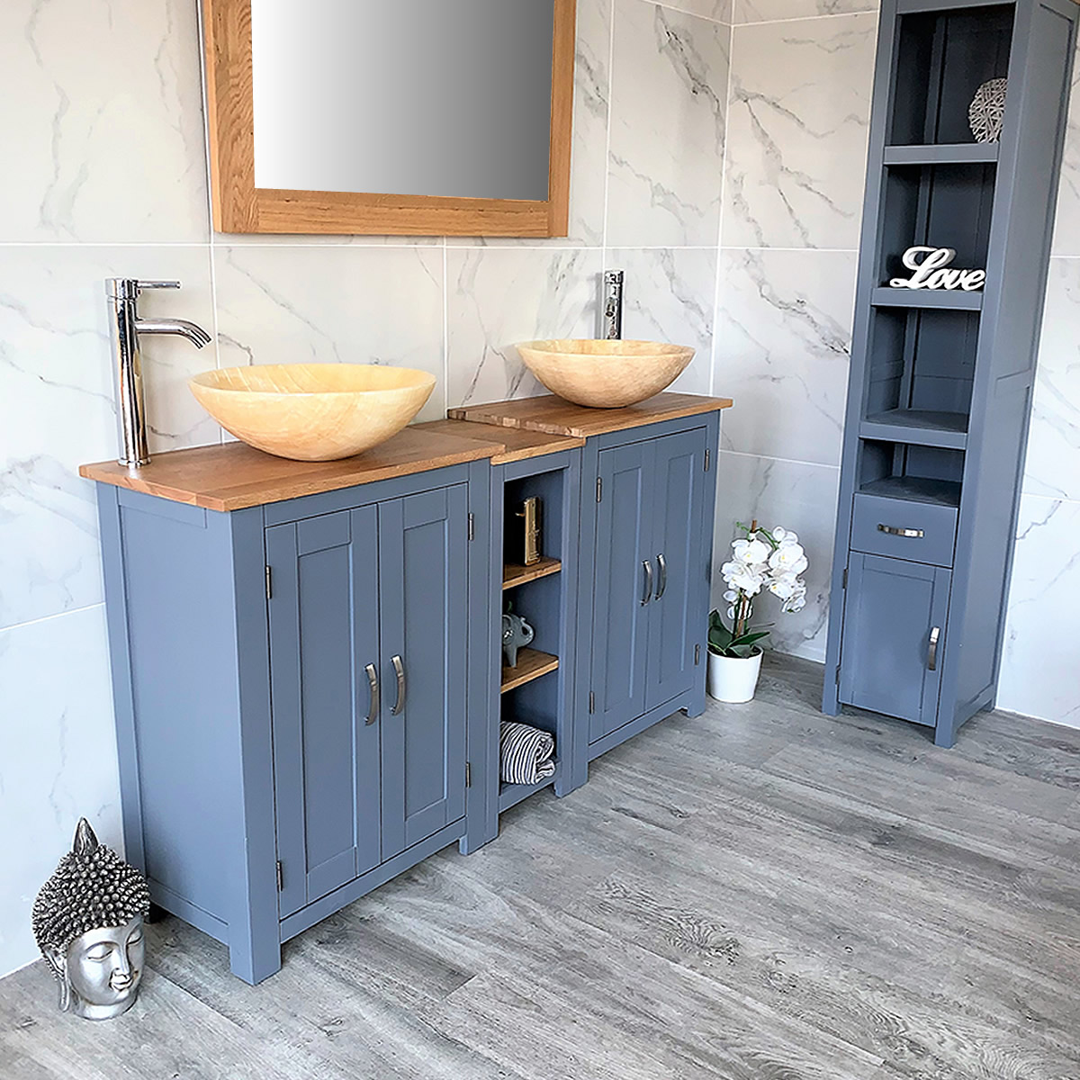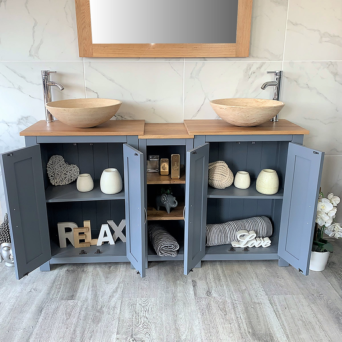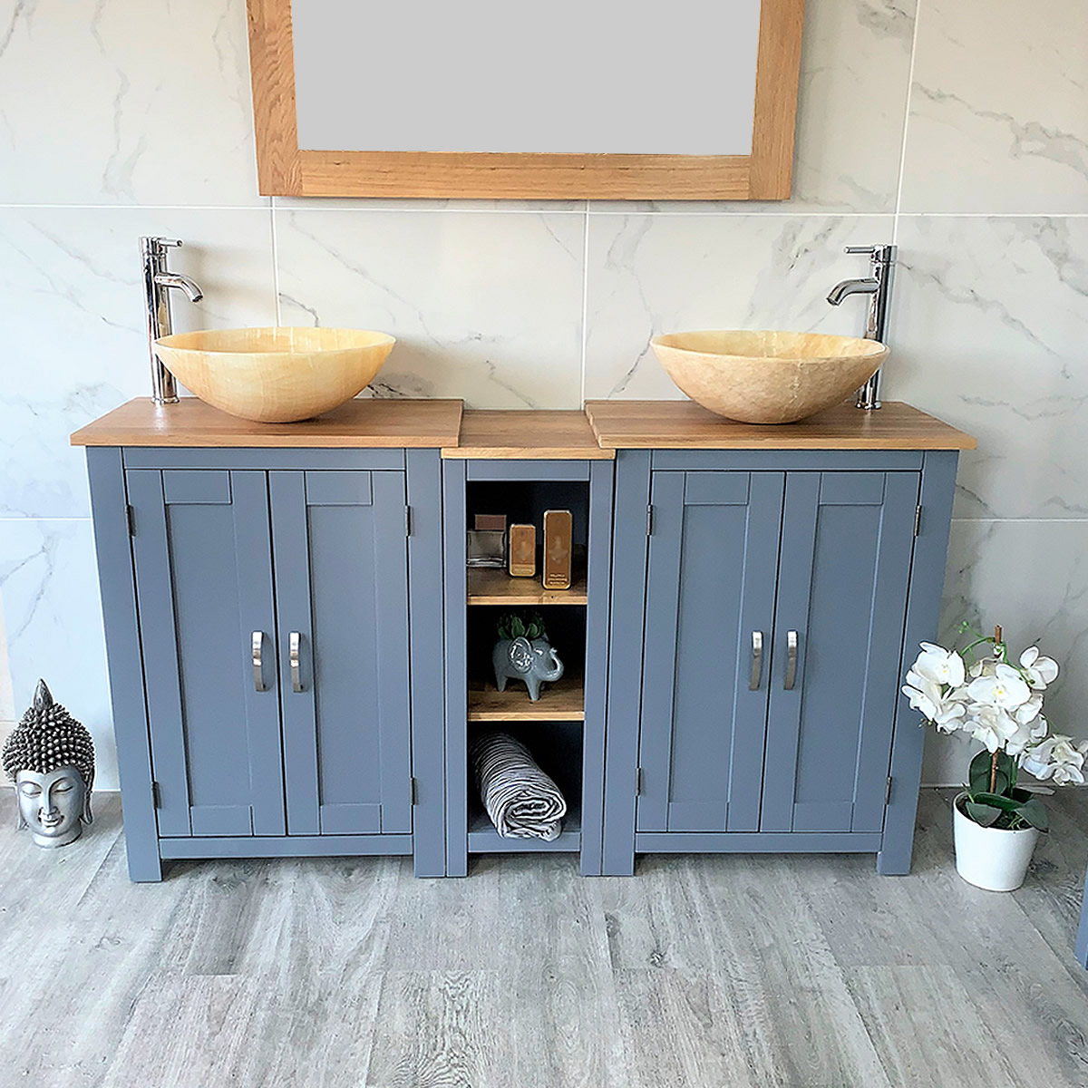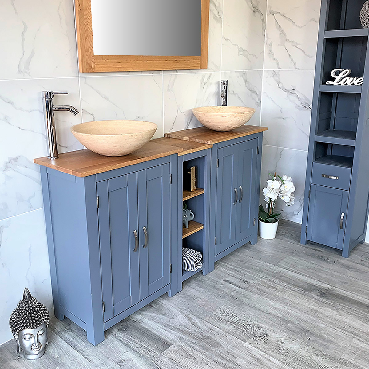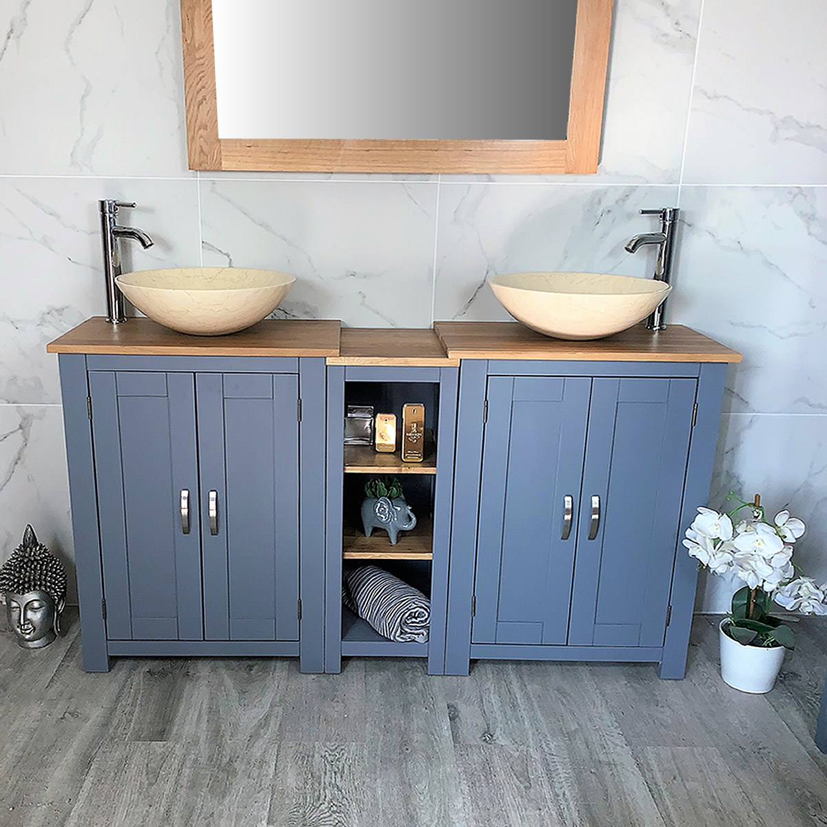 Double Basin Vanity Unit with Oak Top & Two White Marble Basins of your Choice