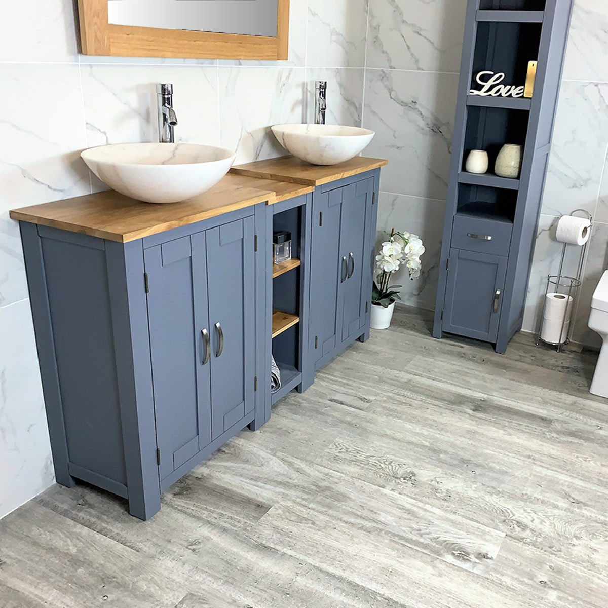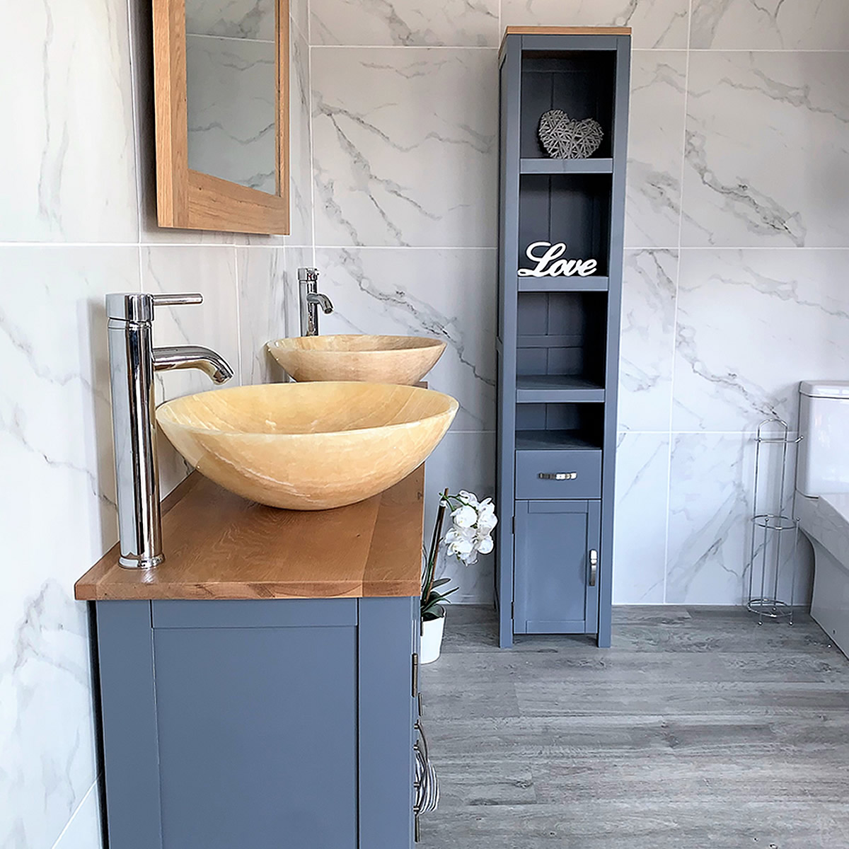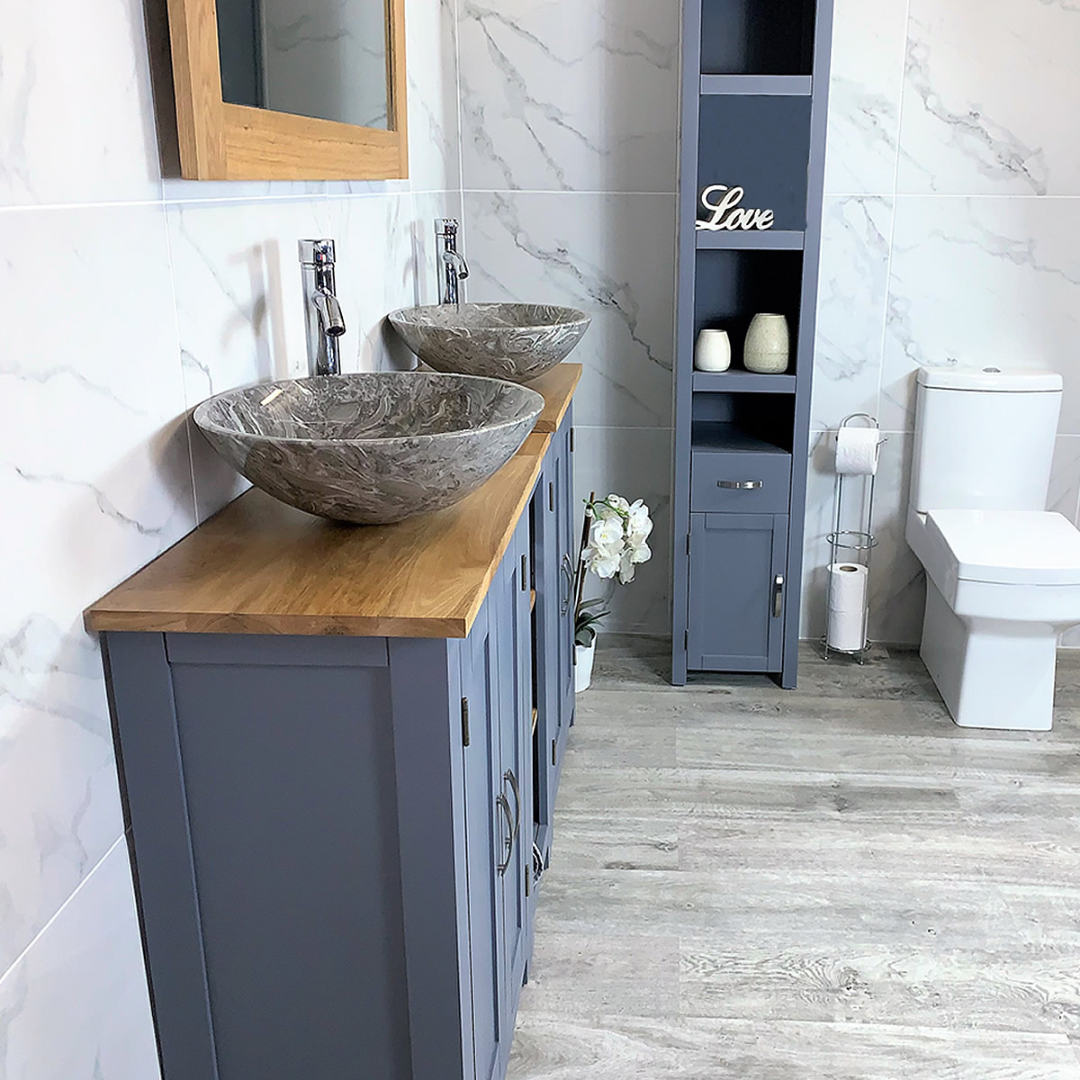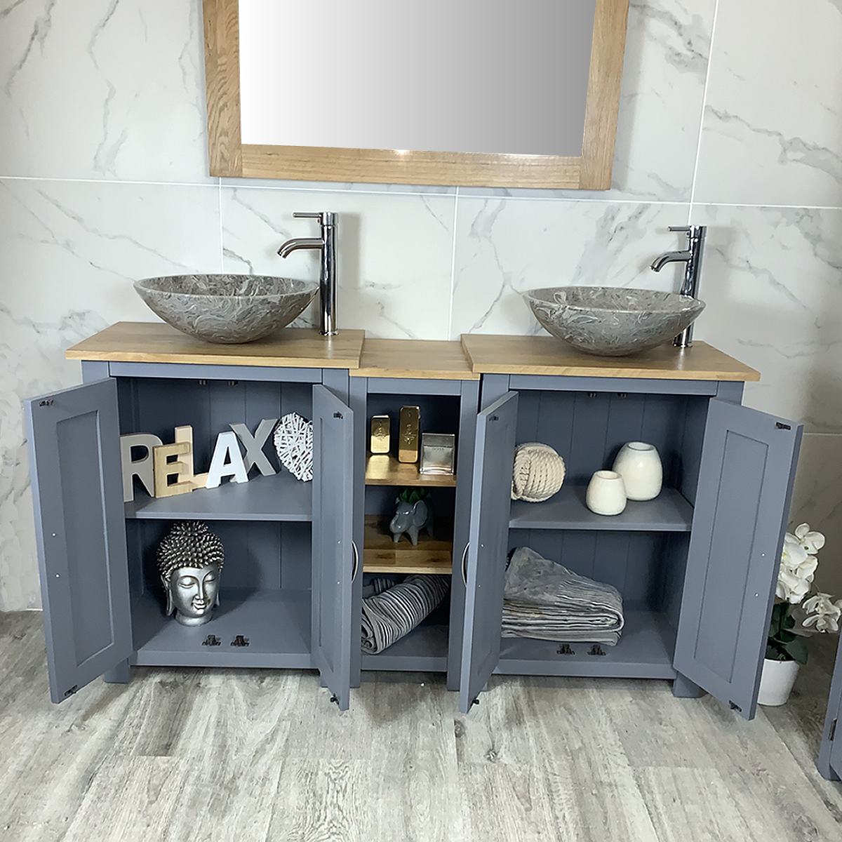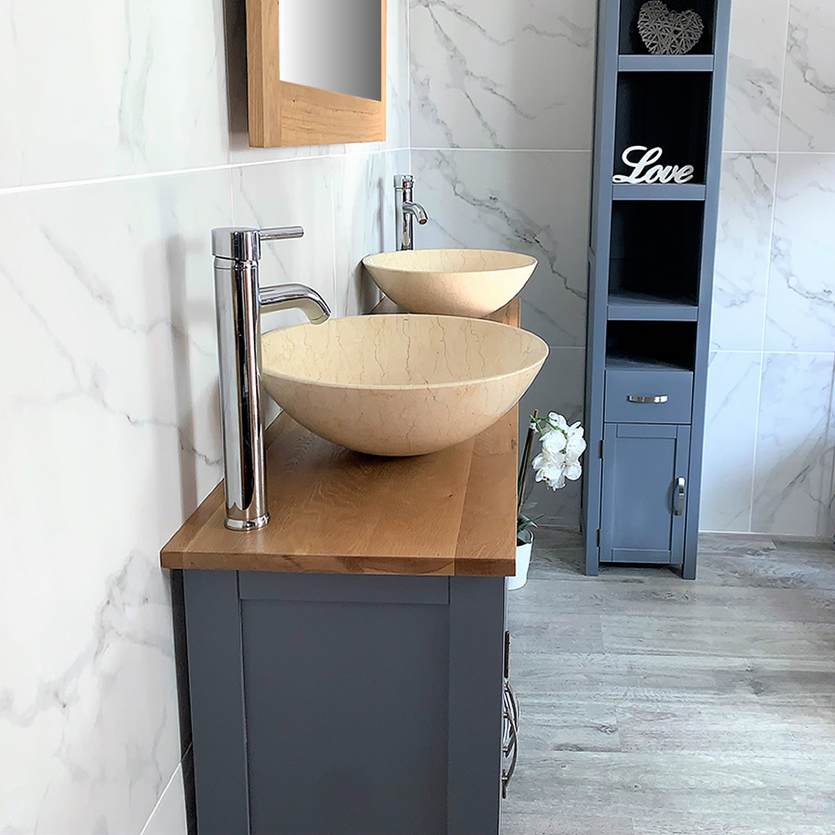 Bathroom Vanity Unit Sink Washstand Grey Painted Sit On Marble Basin Tap 311GSBC