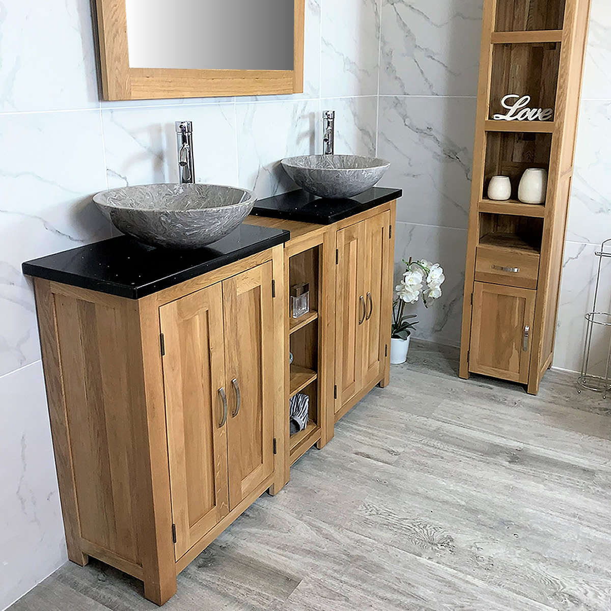Be the first to review “Bathroom Vanity Unit Sink Washstand Slimline Oak Black Quartz Worktop Basin Tap 311BQSBC”