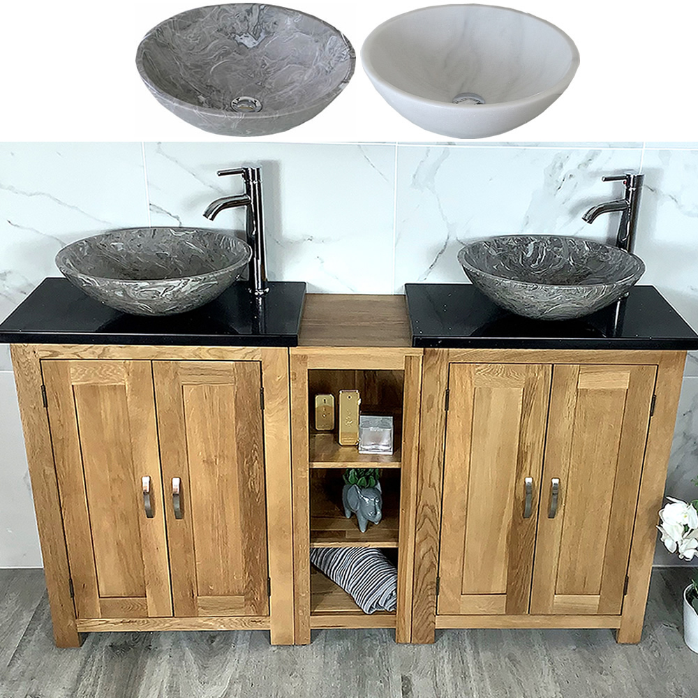 • Two beautiful heavy marble bowls of choice, see the dimensions of each basin below: