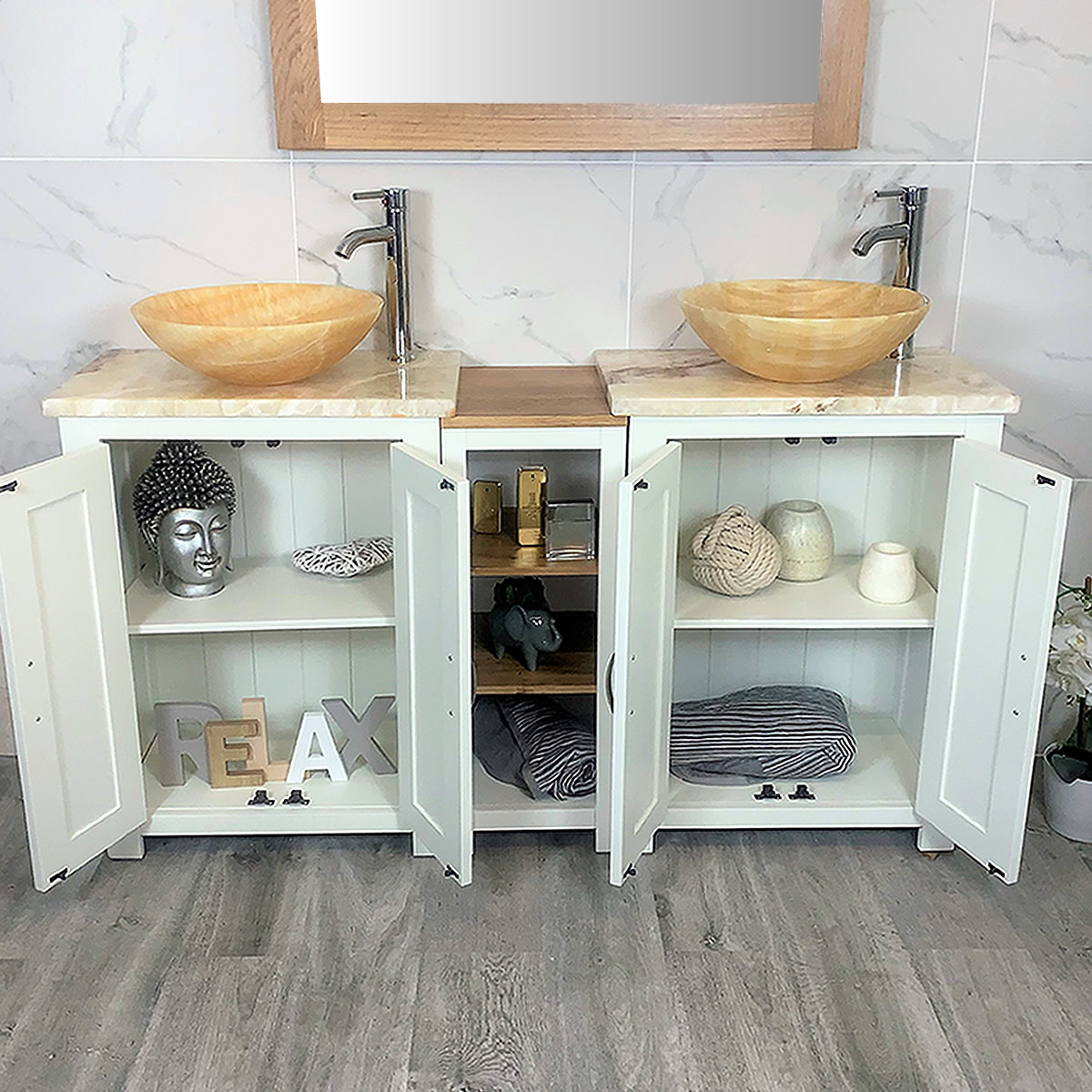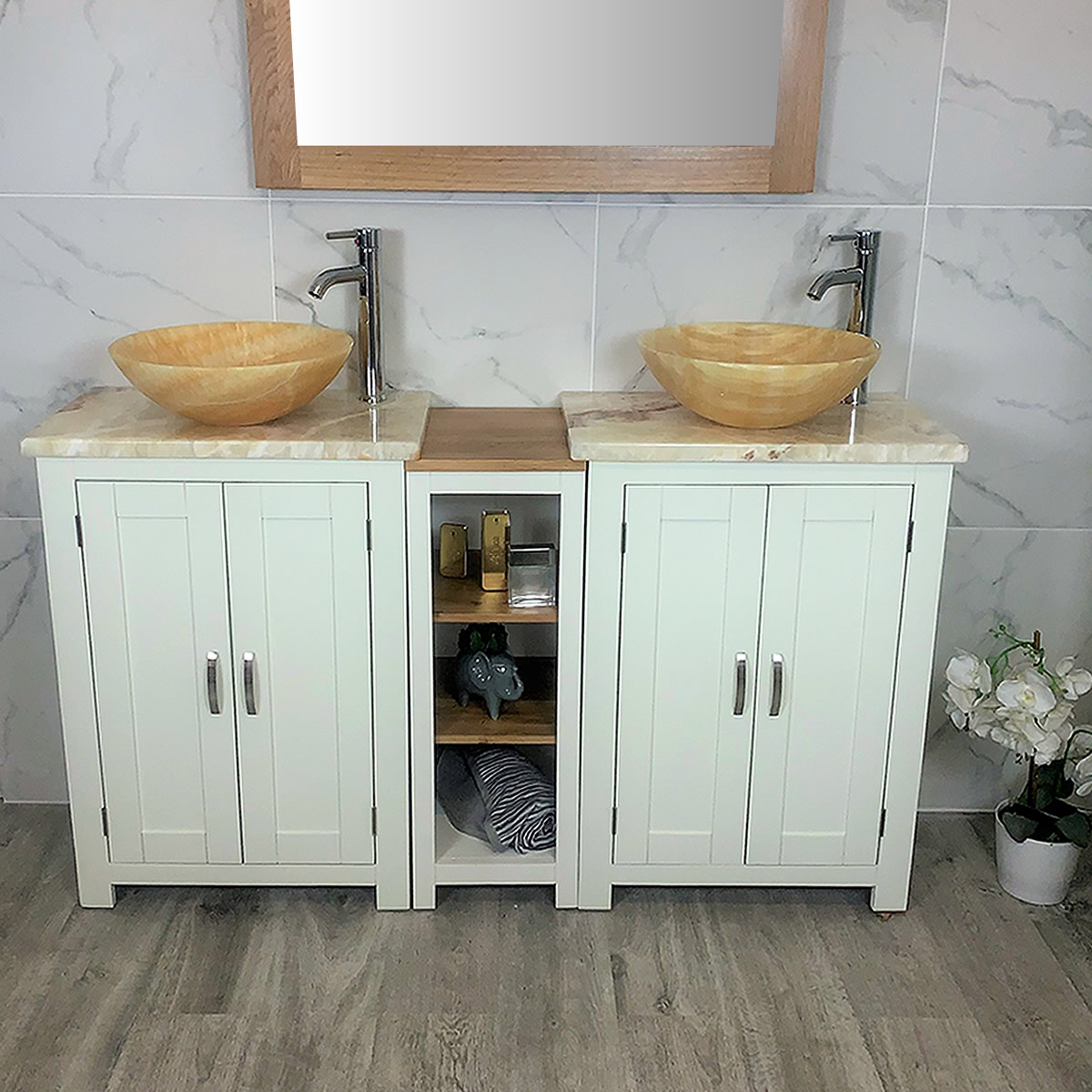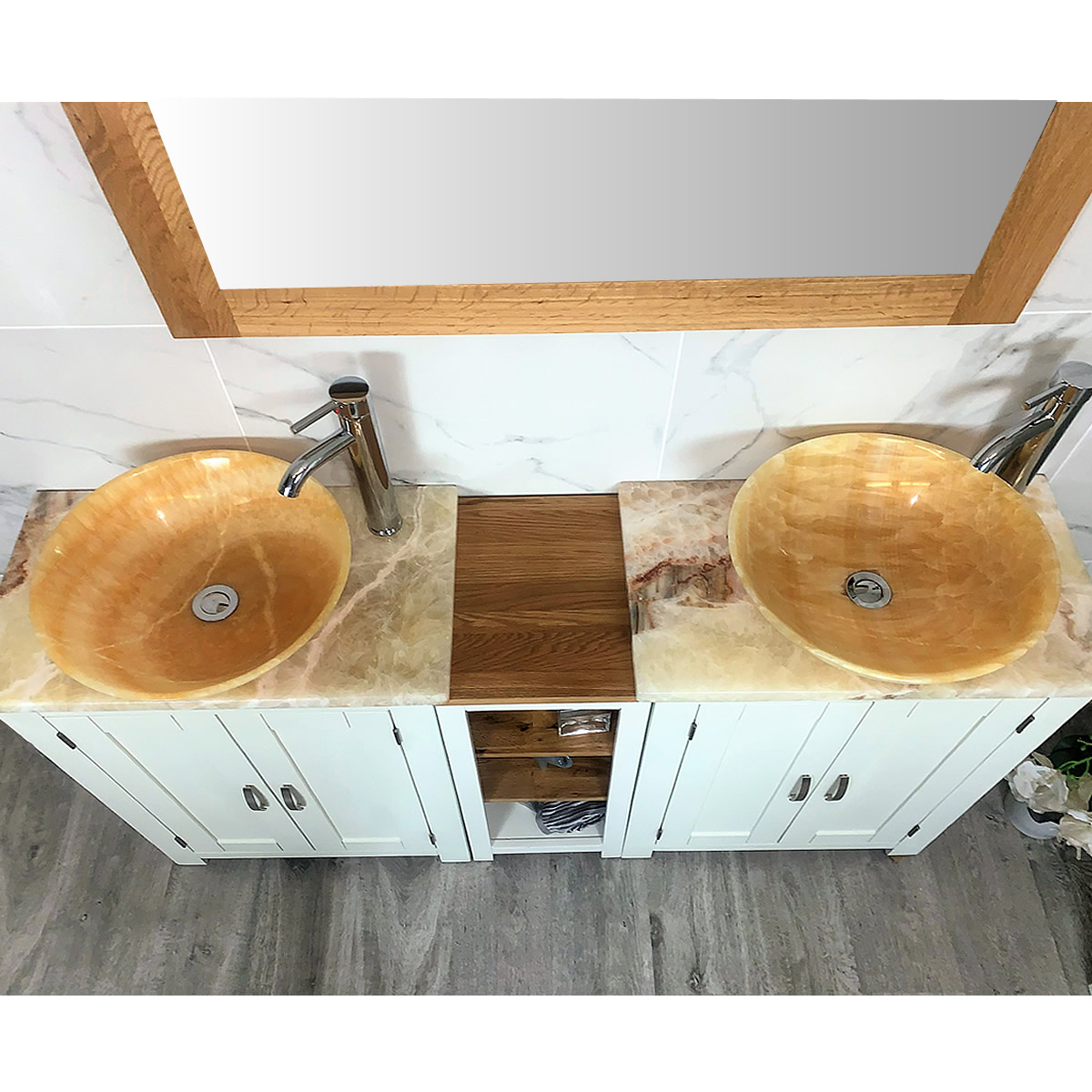 Large Oak Vanity Unit with Golden Onyx Top & 2 Golden Onyx Basins