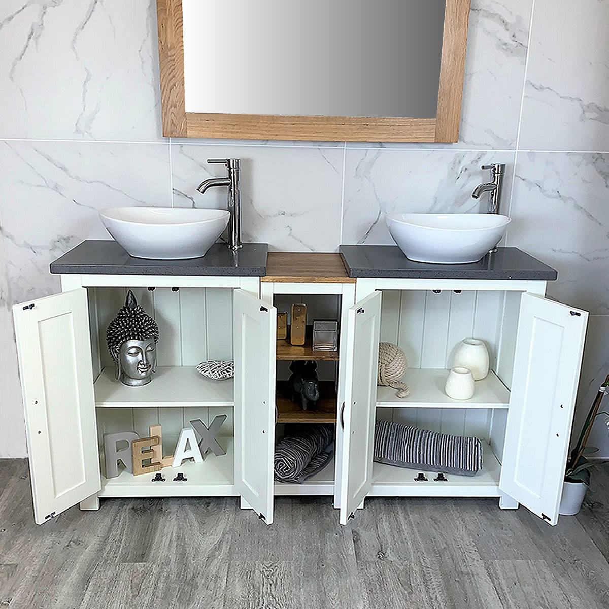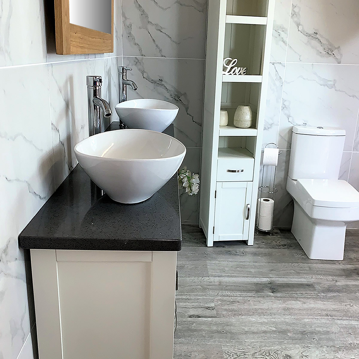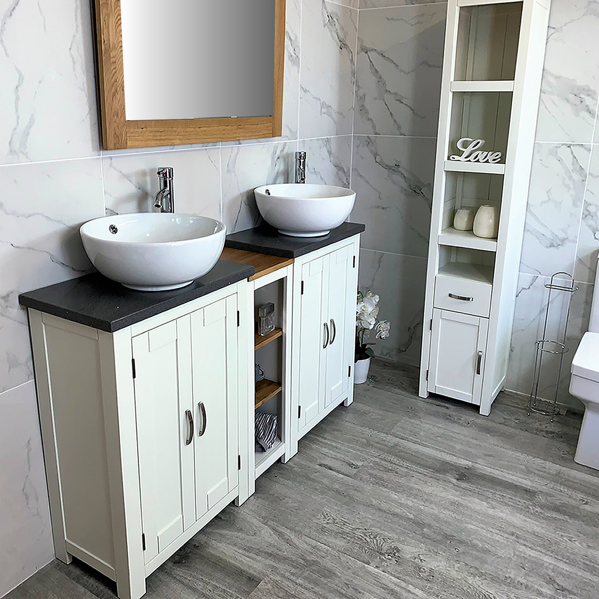 Be the first to review “Bathroom Vanity Unit Sink Washstand Slimline White Painted Quartz Worktop Basin Tap 311PGQCBC”