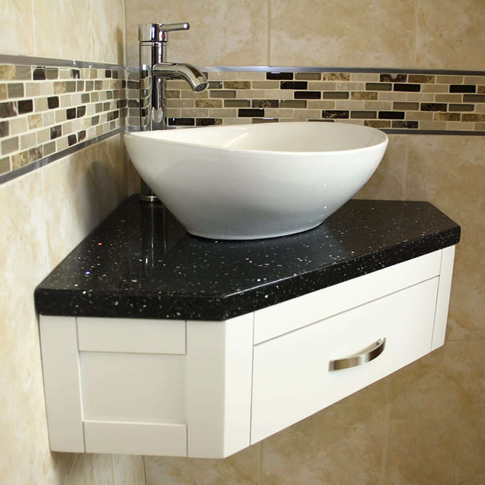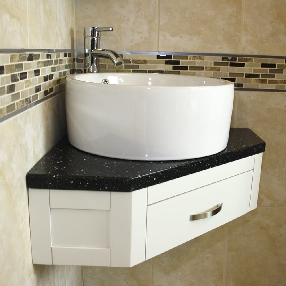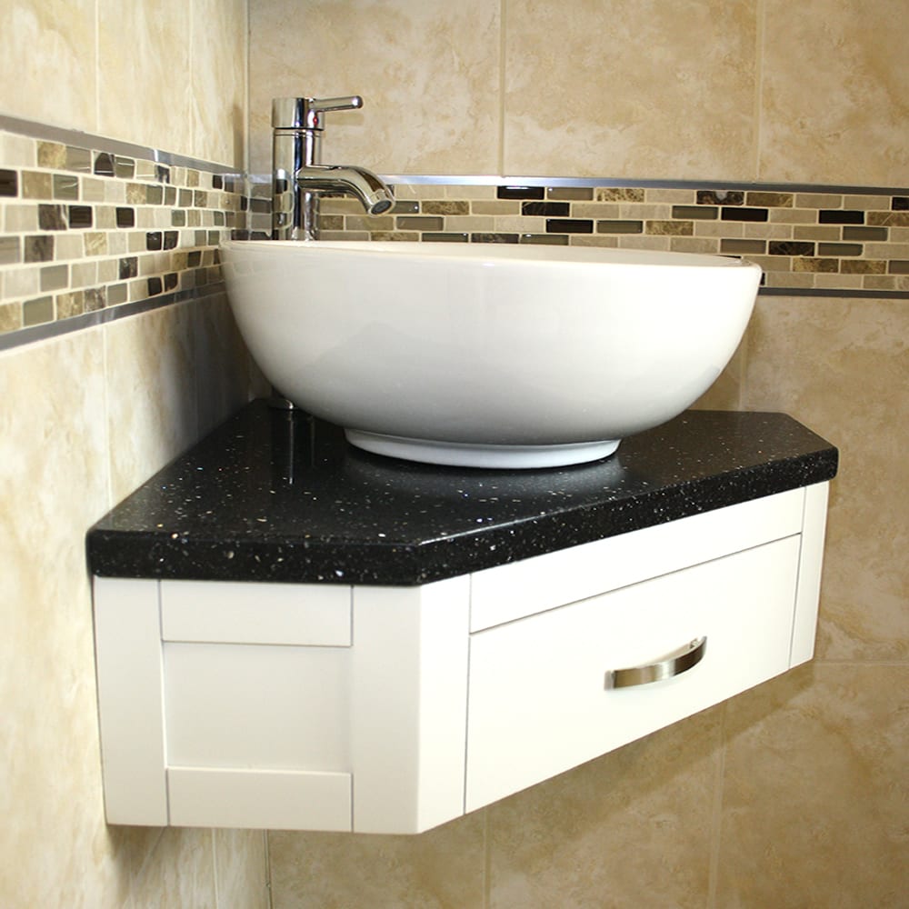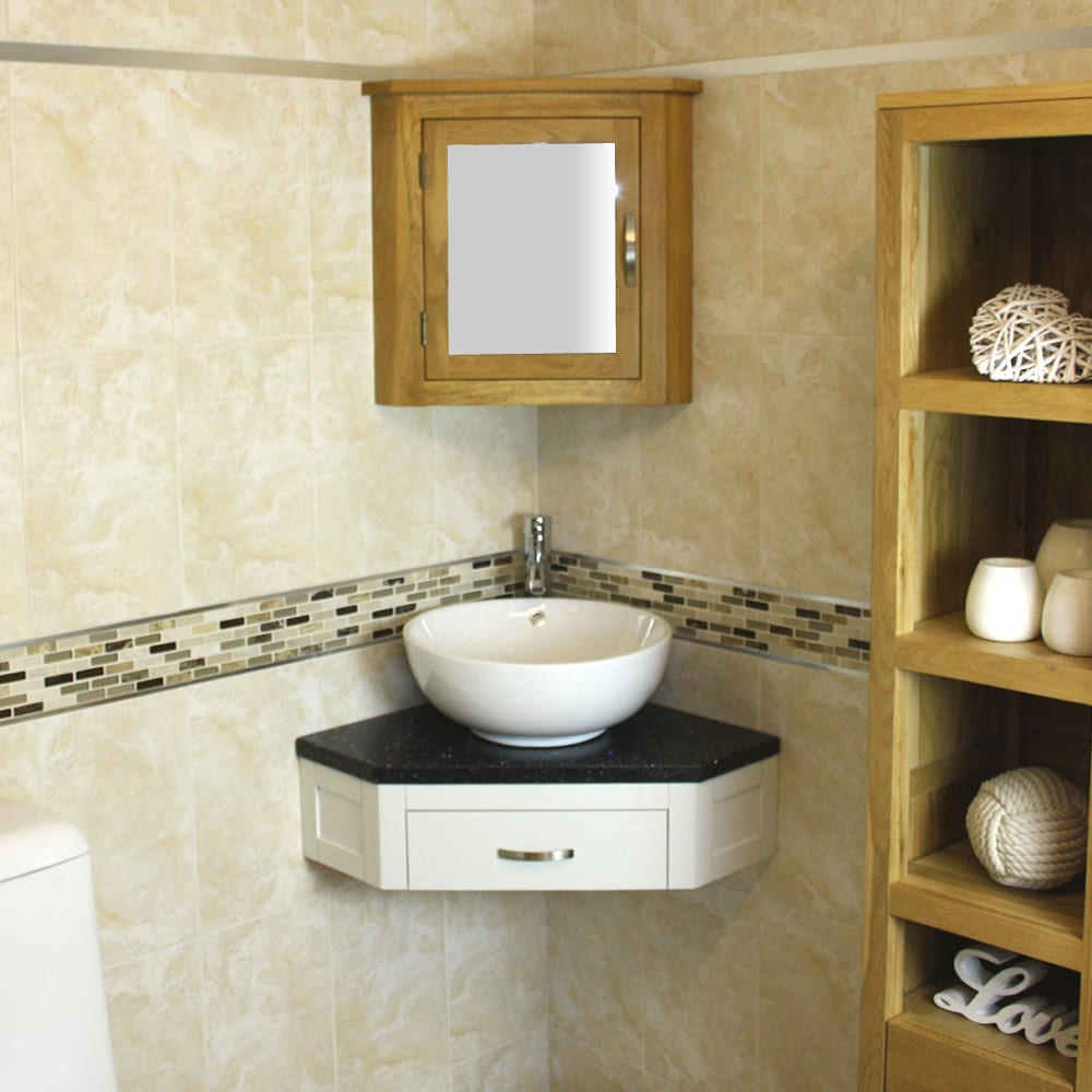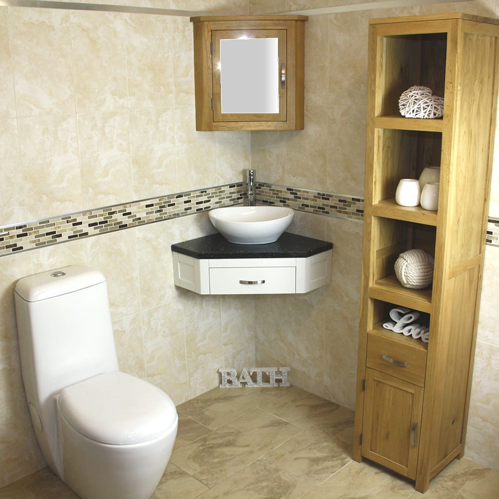 Mirrored corner cabinet and tall storage unit in image are not included but are optional extras, please see below.