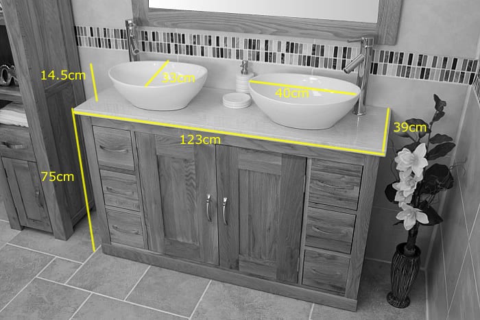 - Two ceramic bowls of choice. see the dimensions of each basin below: