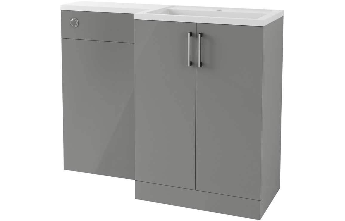 Reatta 1100mm Basin Unit Basin & WC Pack (RH) – Grey Gloss comes with 5 Years Guarantee. In a Modular Contemporary style, Basin Unit/WC Unit Pack with a Grey Gloss Fascia