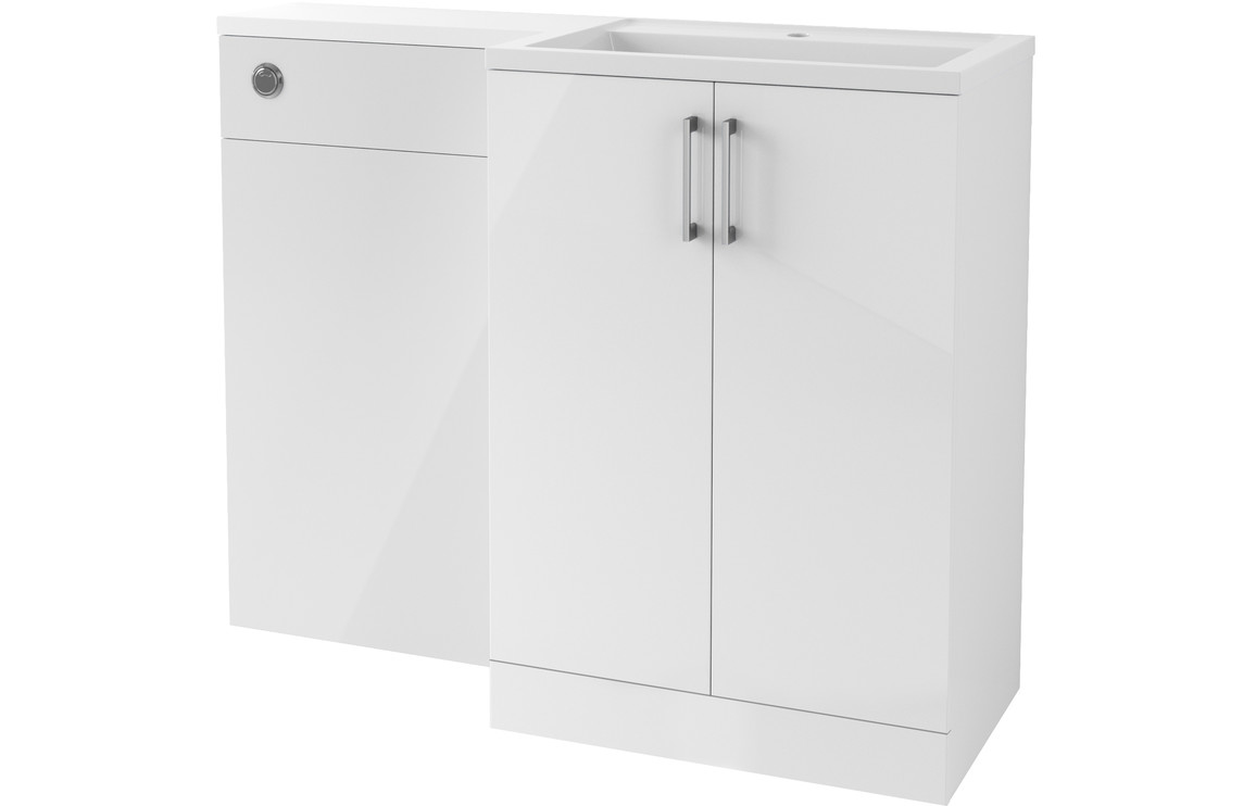 Reatta 1100mm Basin Unit Basin & WC Pack (RH) – White Gloss comes with 5 Years Guarantee. In a Modular Contemporary style, Basin Unit/WC Unit Pack with a White Gloss Fascia