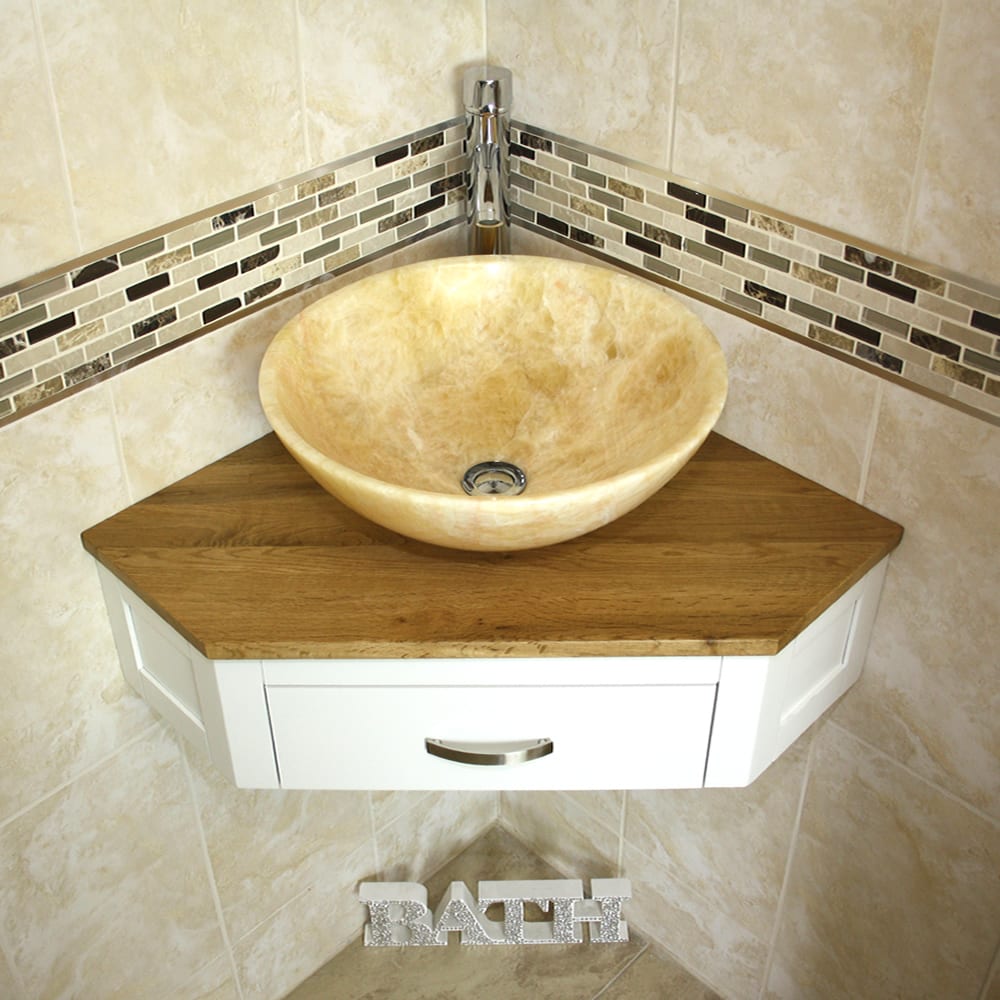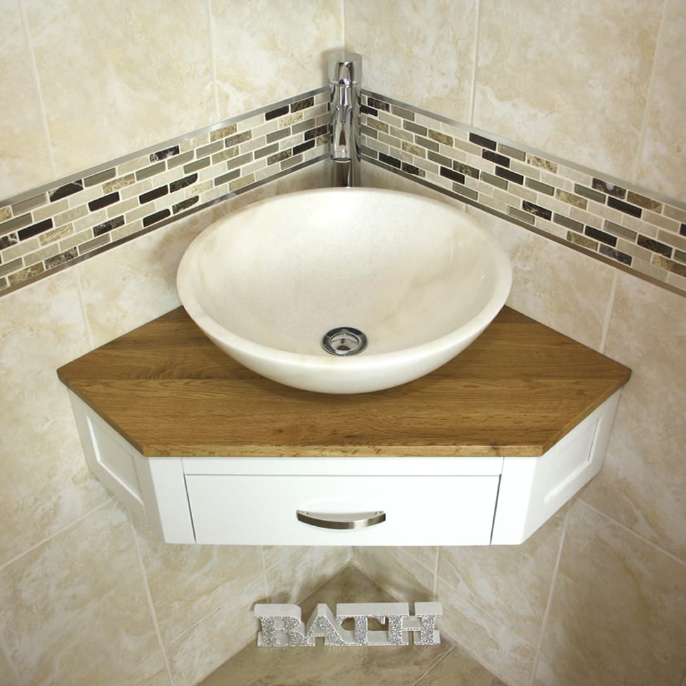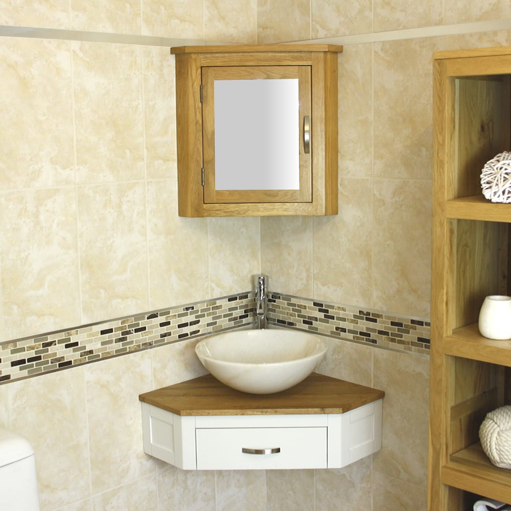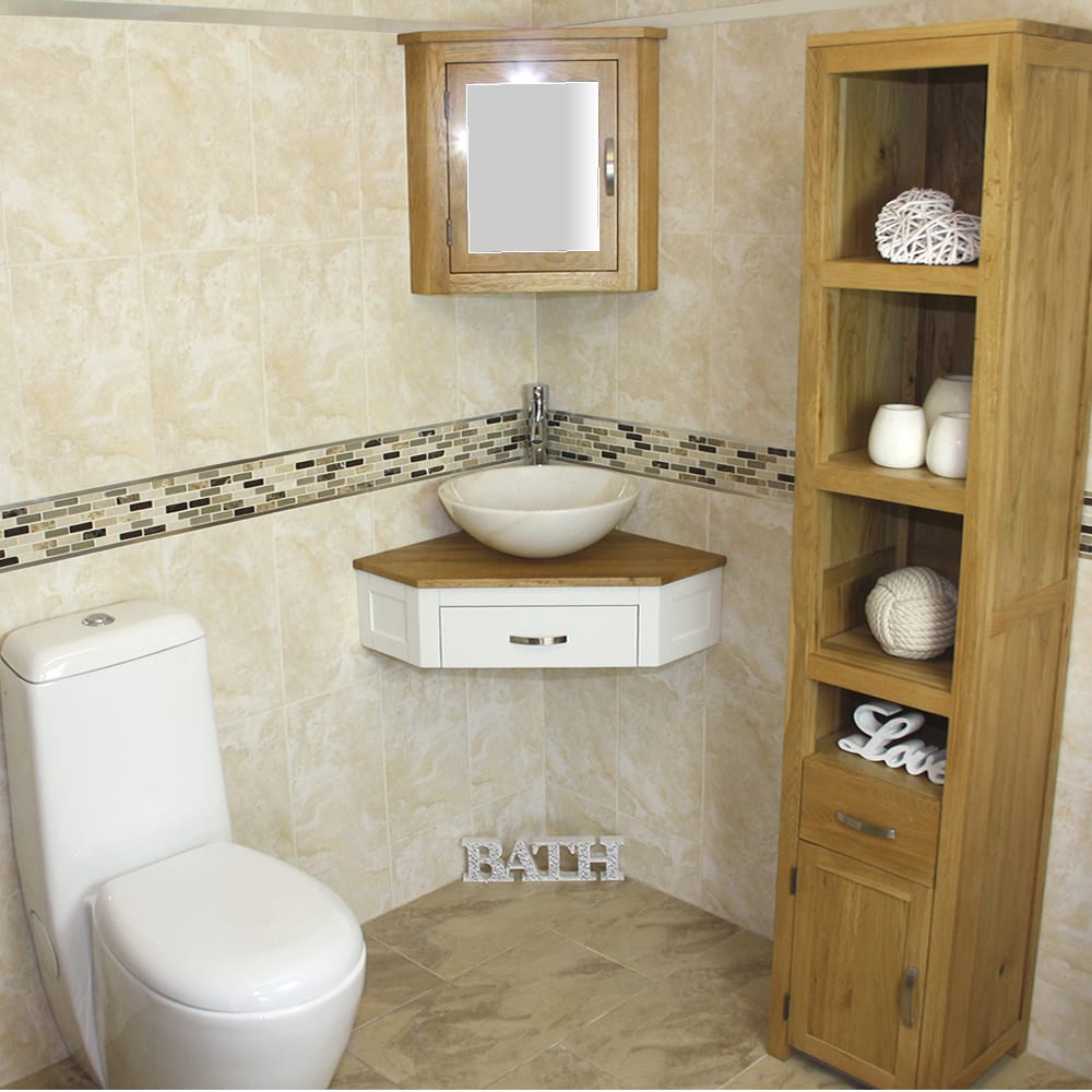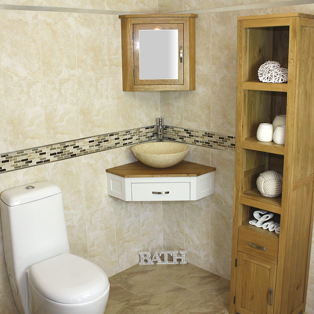 Mirrored corner cabinet and tall storage unit in image are not included but are optional extras, please see below.