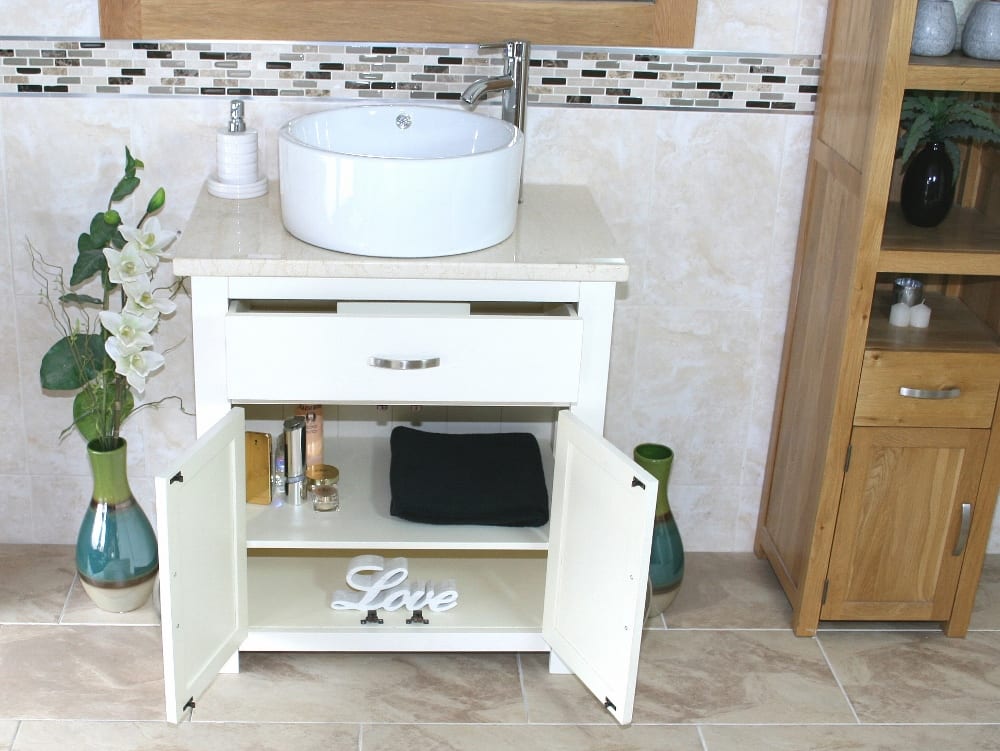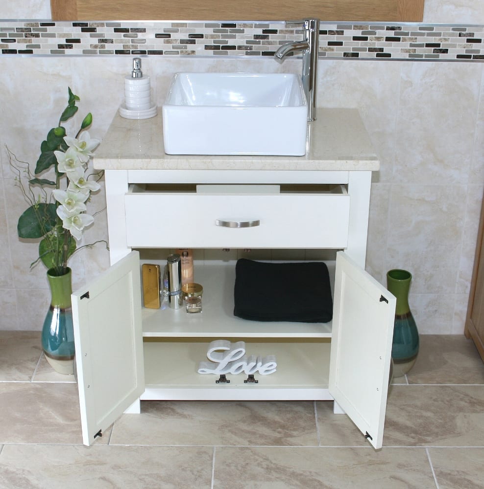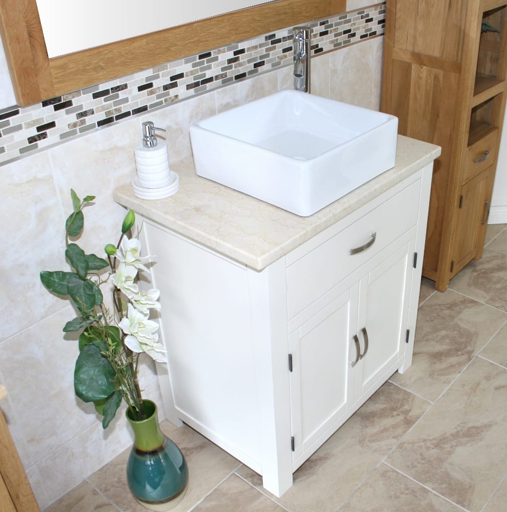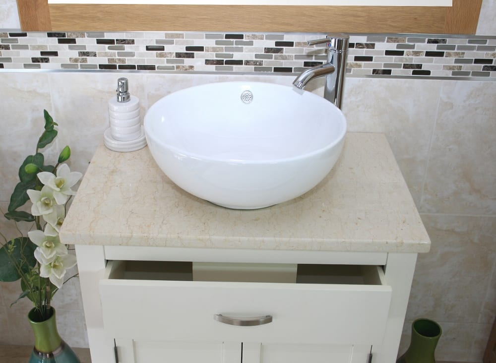 Be the first to review “White Painted Vanity | Cream Marble Top & Ceramic Basin Unit 502PCMCBC”