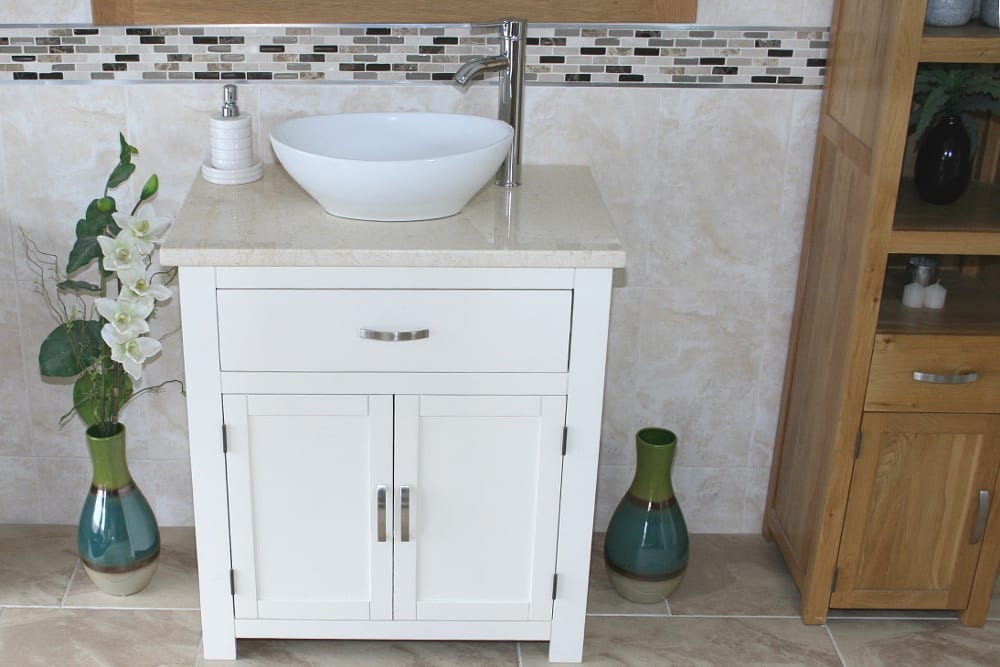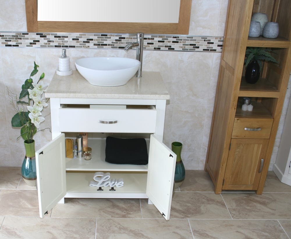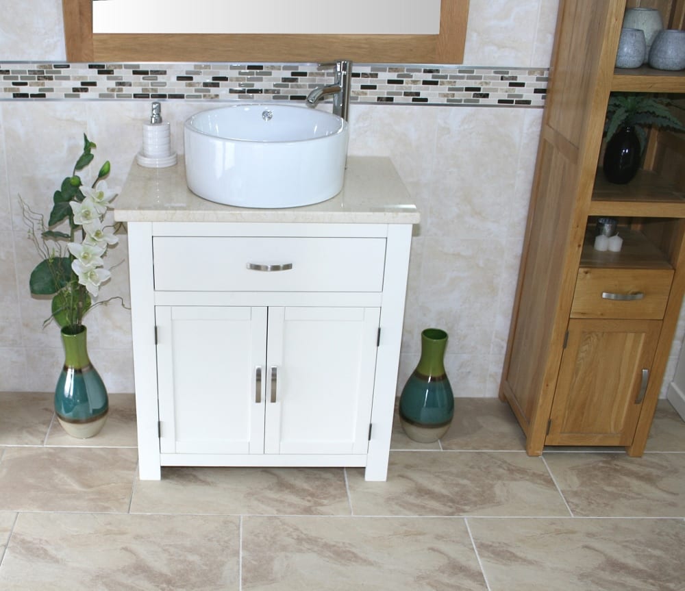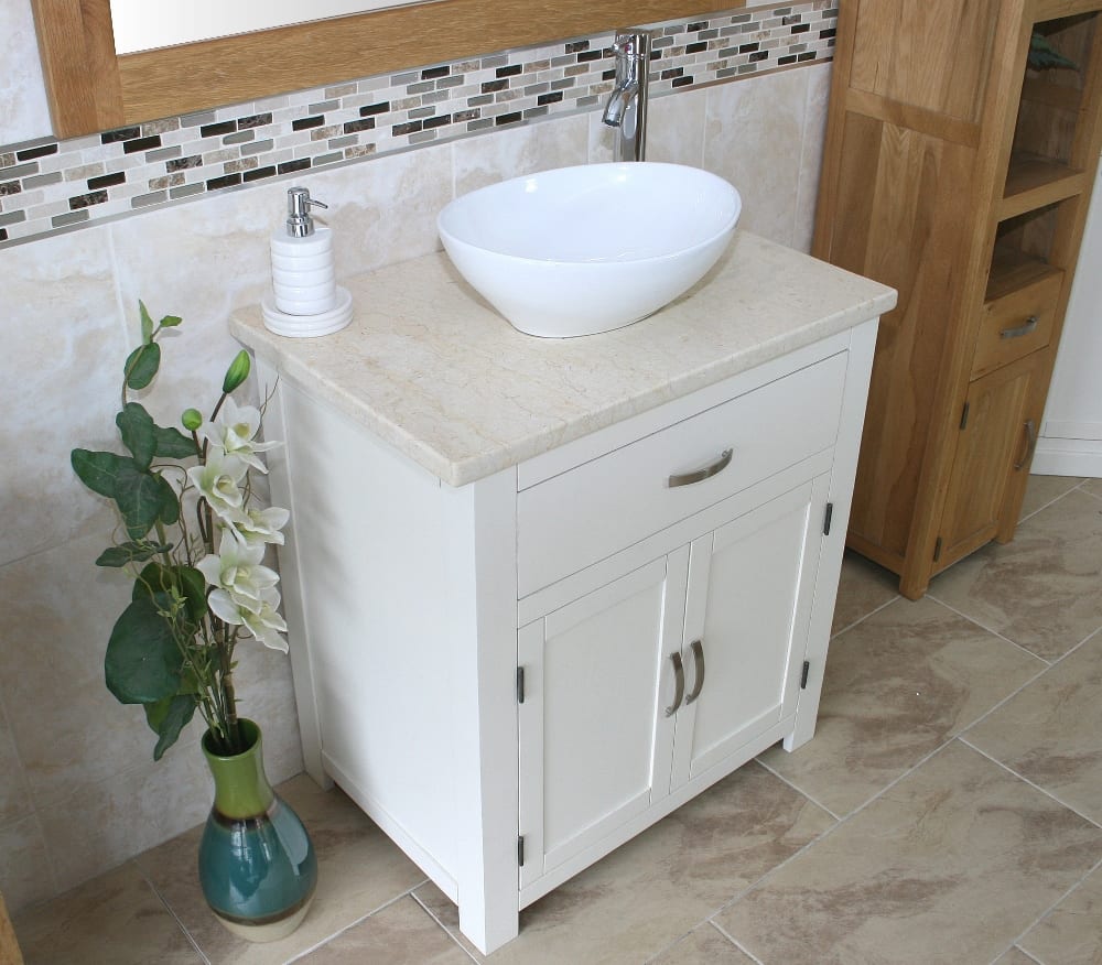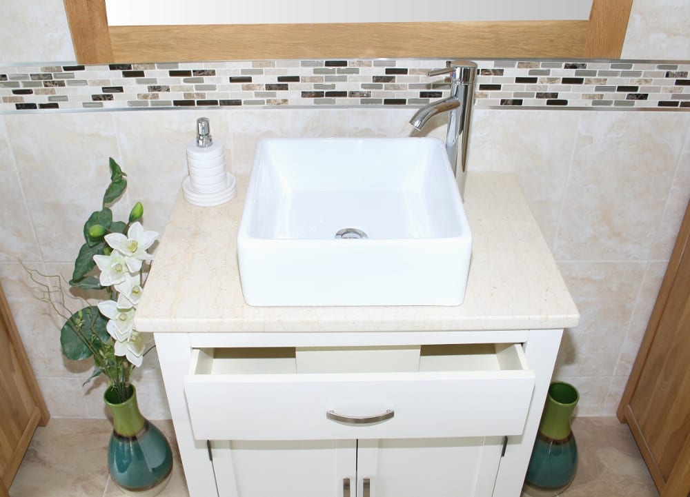 Be the first to review “White Painted Vanity | Cream Marble Top & Ceramic Basin Unit 502PCMCBC”
