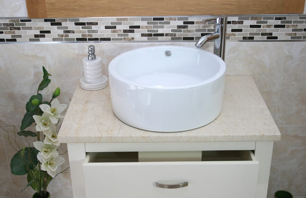 • A stunning pre drilled cream marble top.