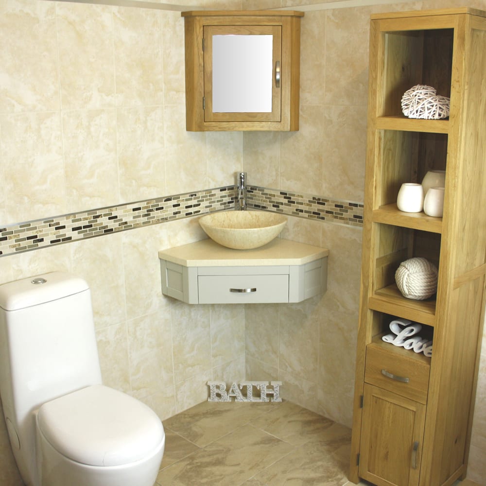 Mirrored corner cabinet and tall storage unit in image are not included but are optional extras, please see below.