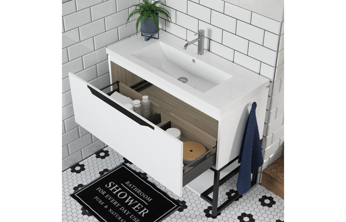 Framework 800mm Floor Standing Basin Unit Inc. Basin – Matt White comes with 5 Years Guarantee. In a Modular Contemporary style, Basin Unit w/Basin with a Matt White Fascia