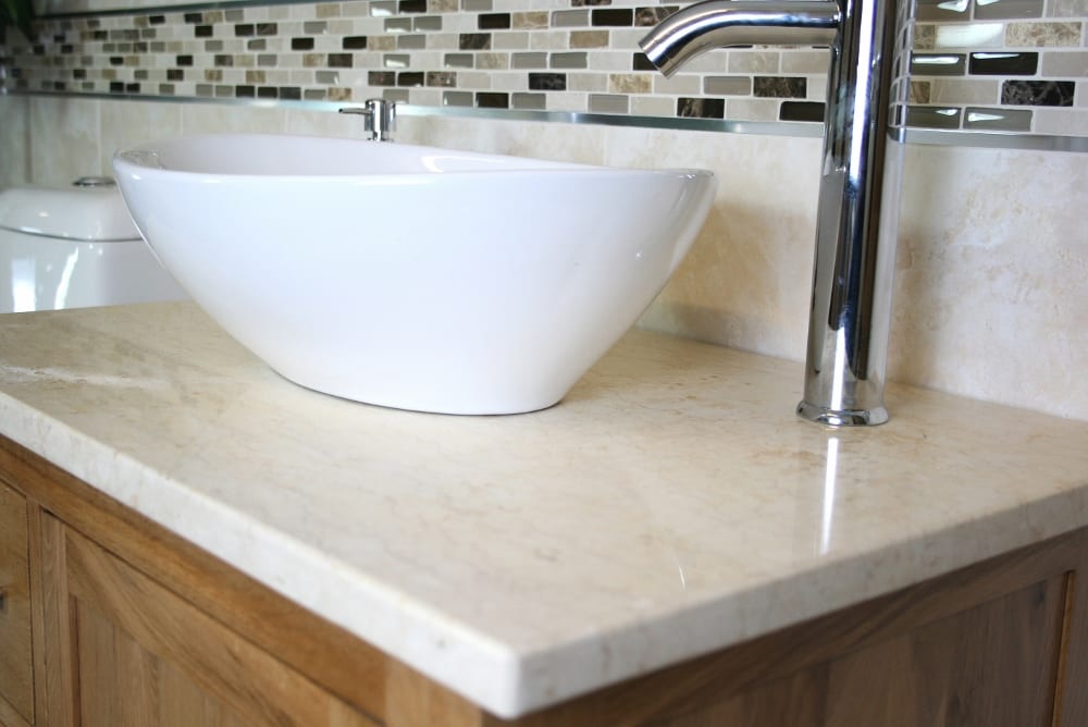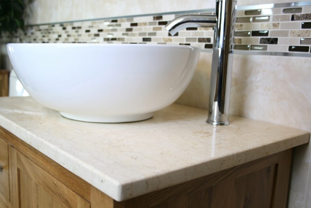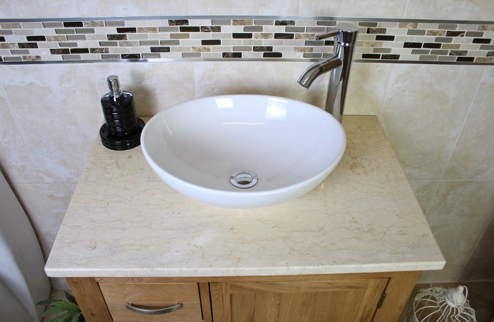 - A stunning pre drilled cream marble top.