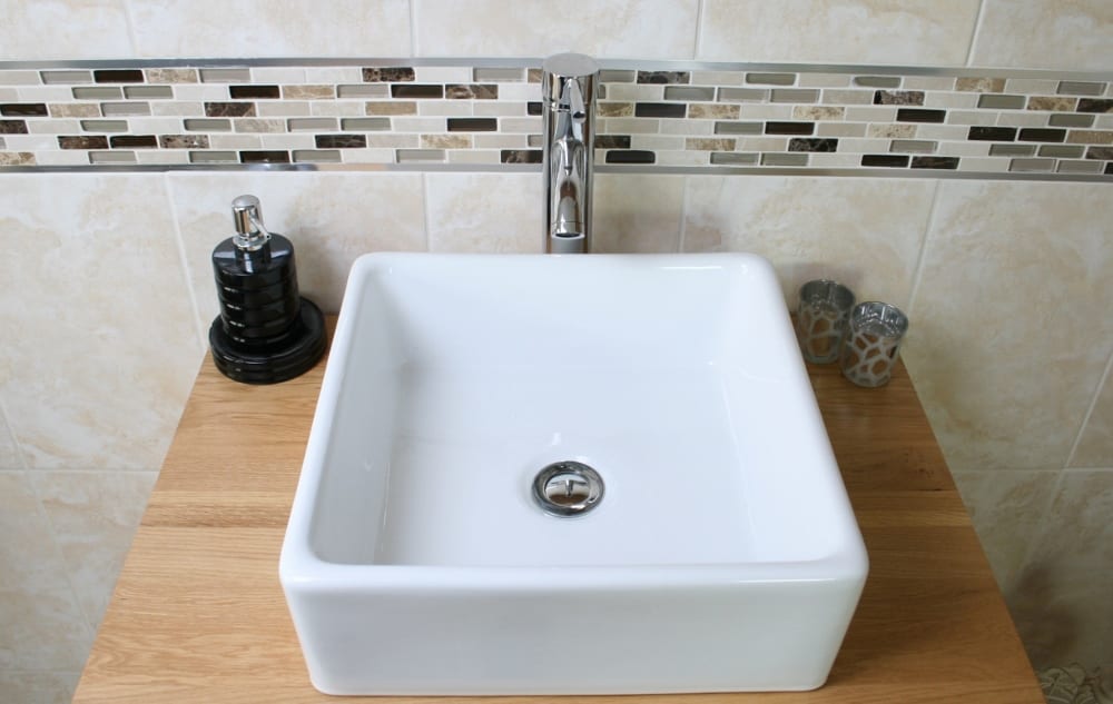 - Tap Mounted Rectangle Ceramic Bowl Dimensions : H13cm X W48cm X D37cm.
