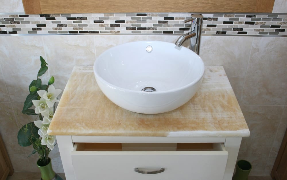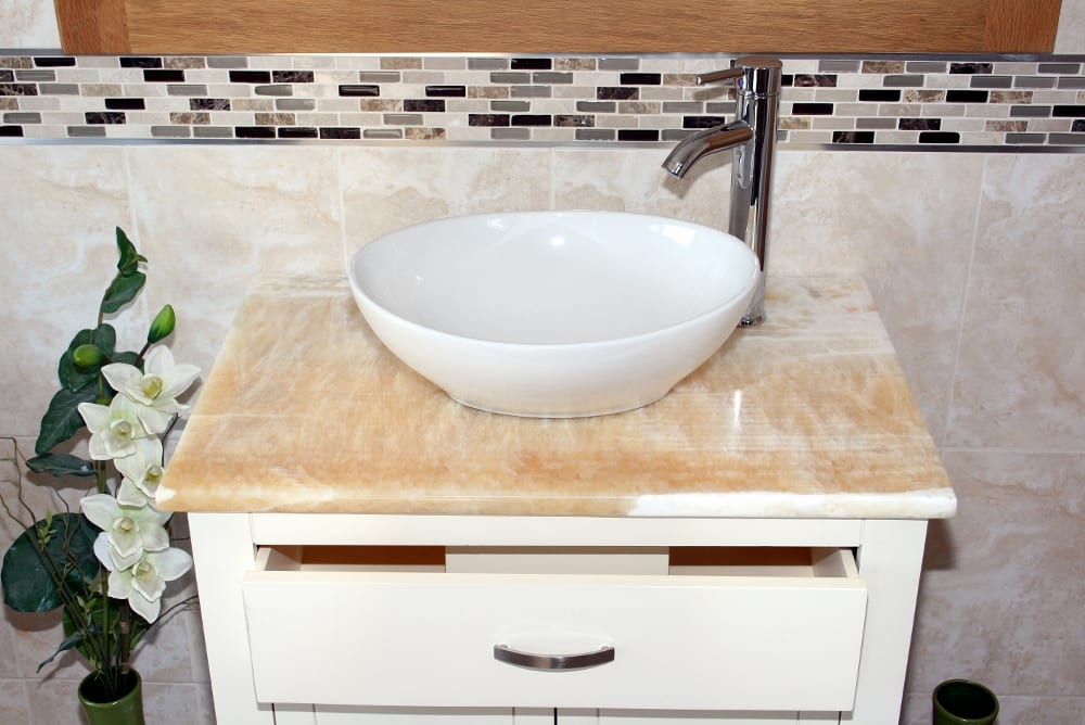 Golden honey onyx is a stunningly beautiful translucent stone that is ideal for creating a backlit bathroom vanity top.