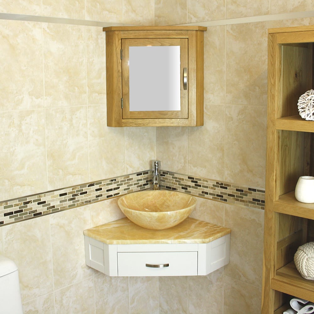 Golden Onyx Top White Painted Corner Vanity Onyx Basin 501PWGO25GO