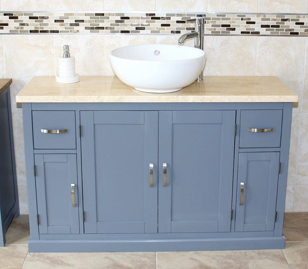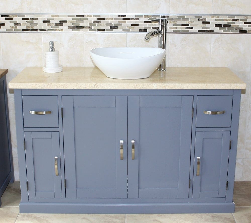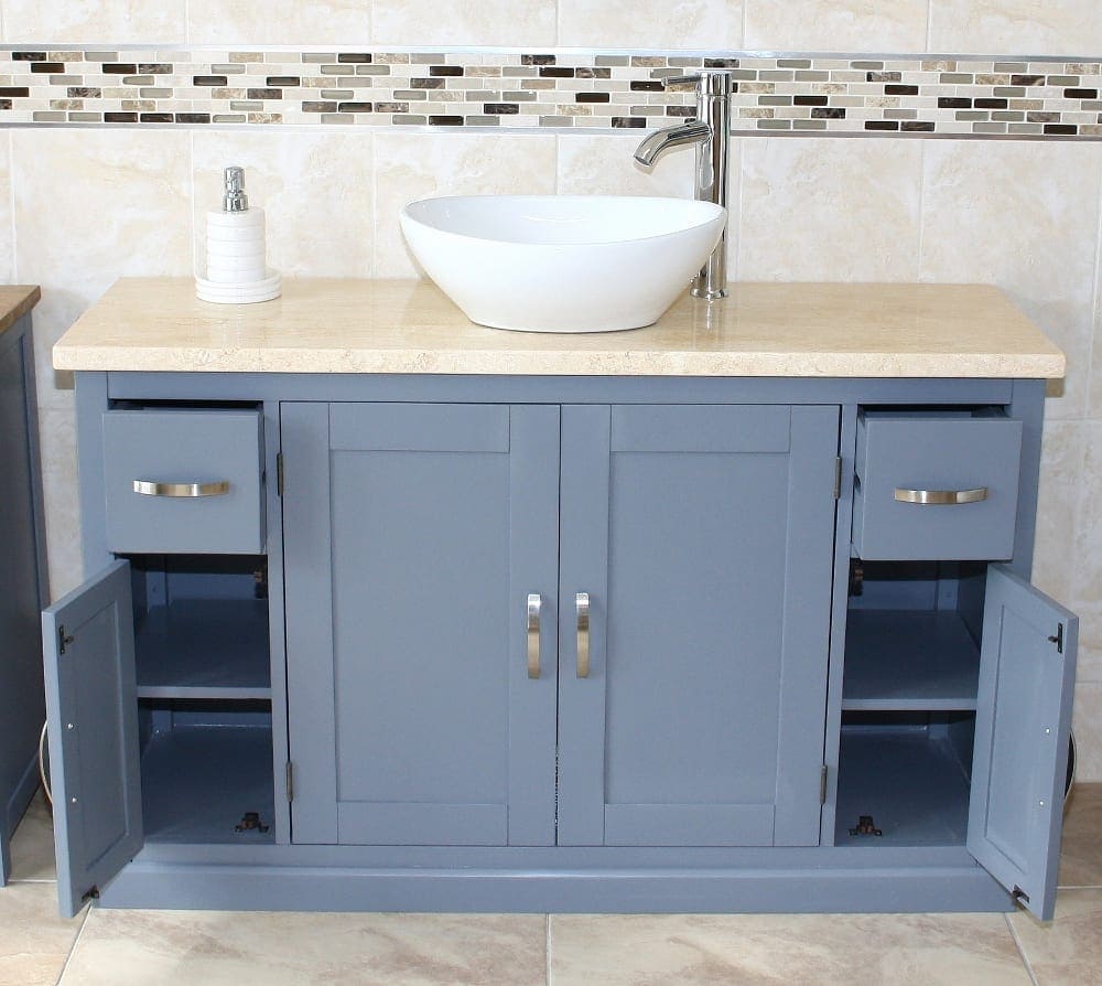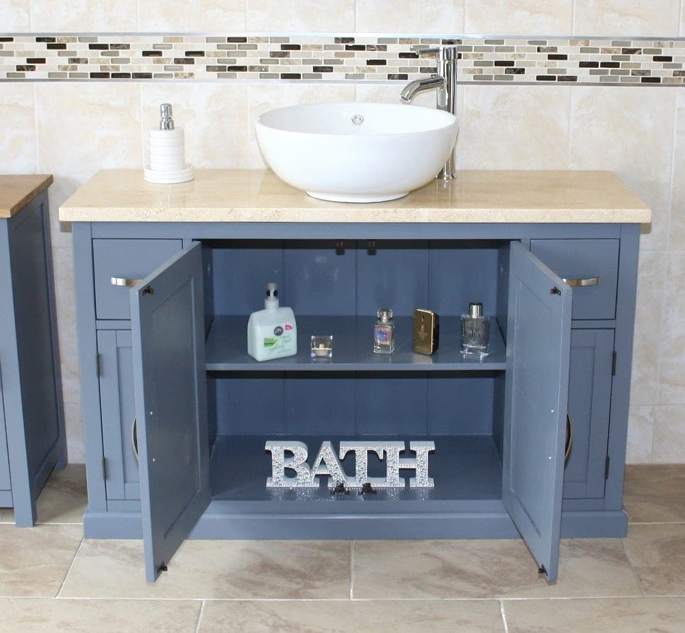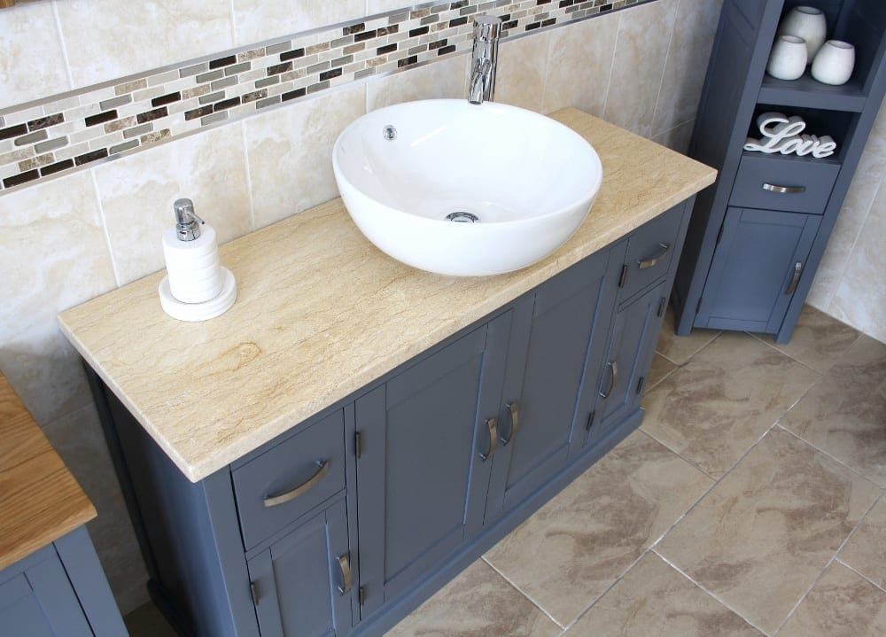 - One stunning double pre-drilled cream veined marble work top.