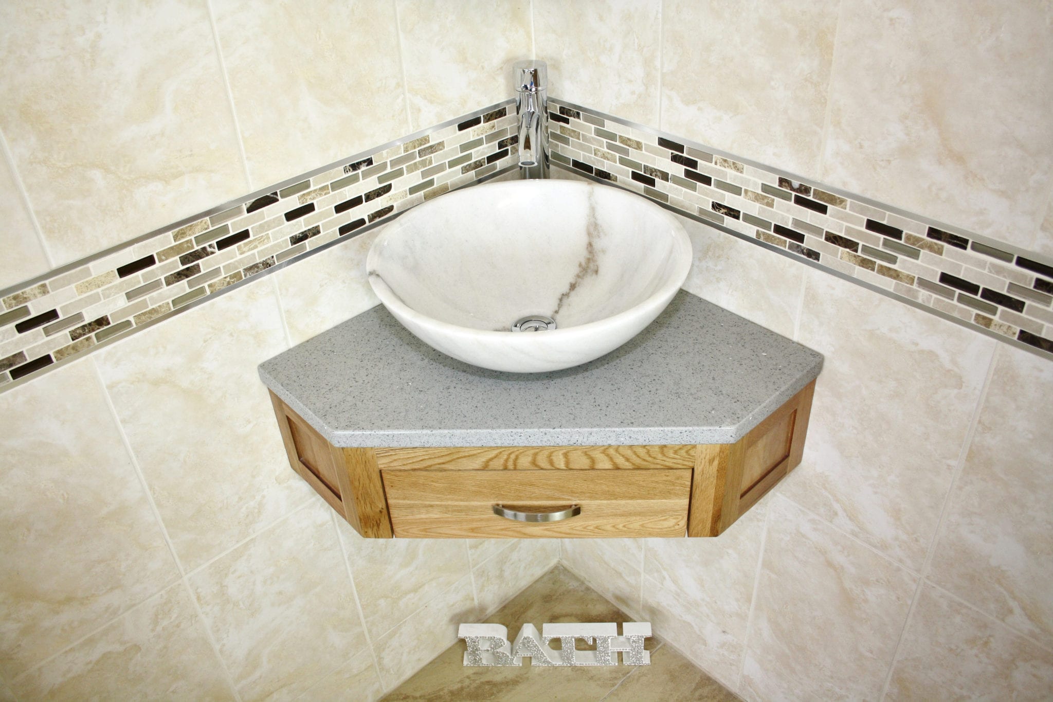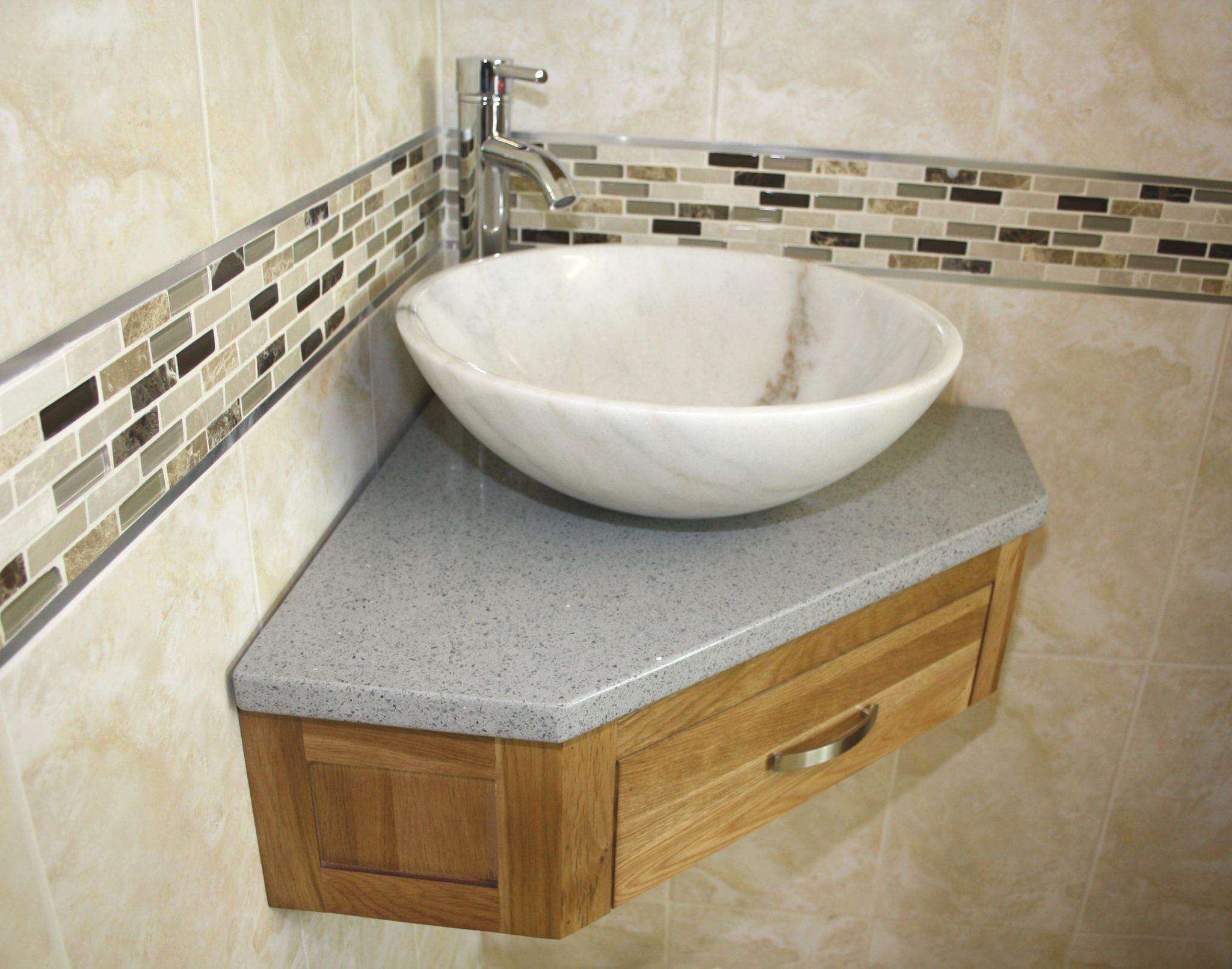 Corner Vanity Unit with Grey Quartz Top & Stunning Marble Basin