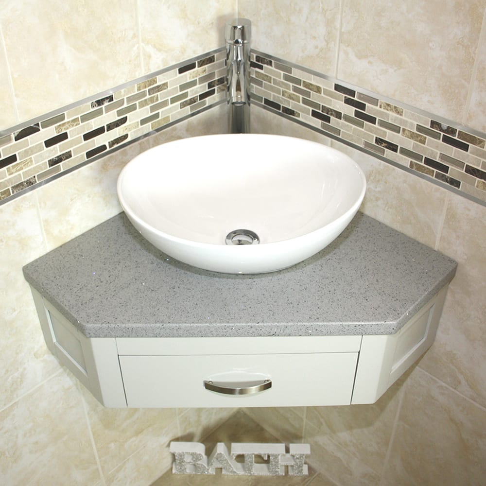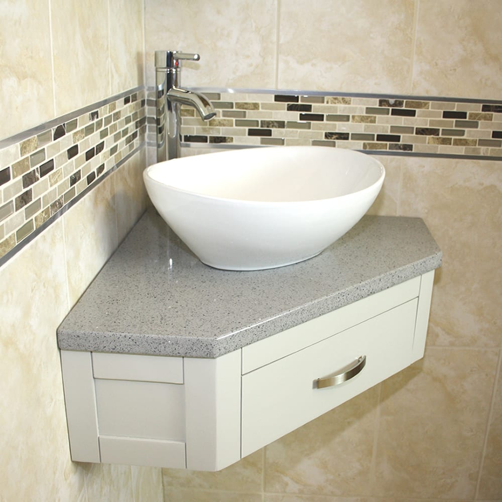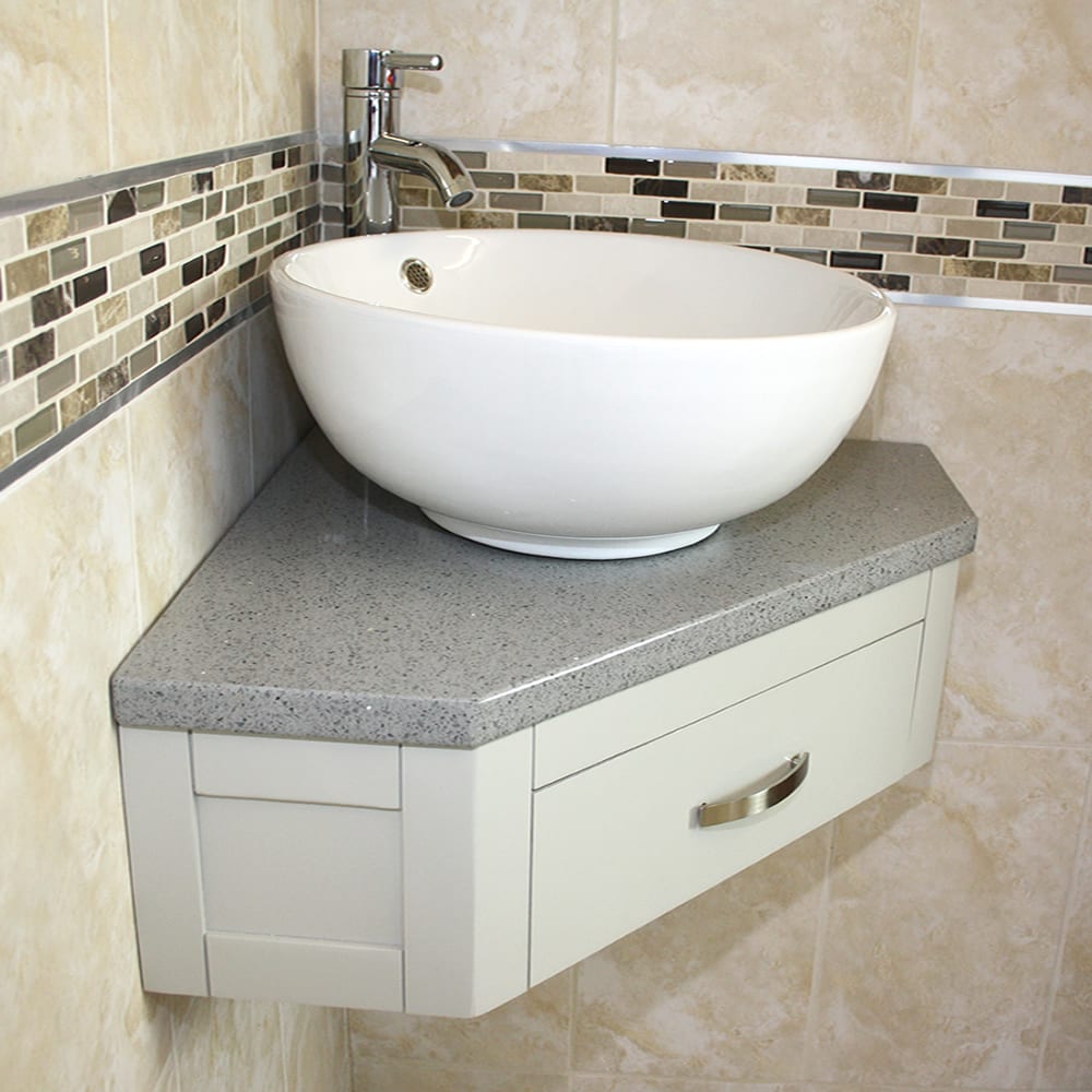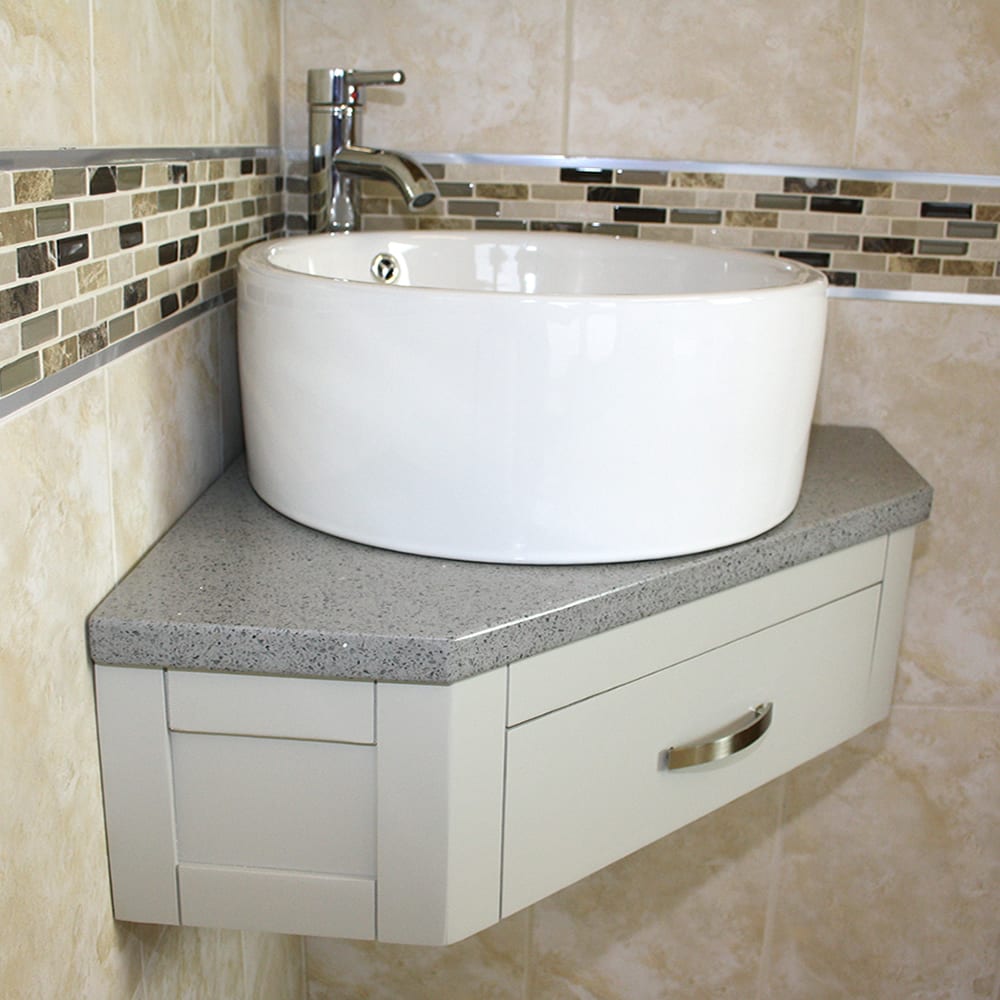 Corner Vanity Unit with Grey Quartz Top & Choice of Ceramic Basin
