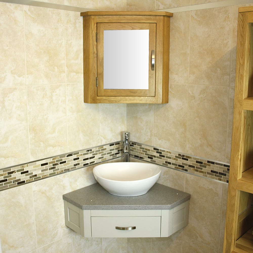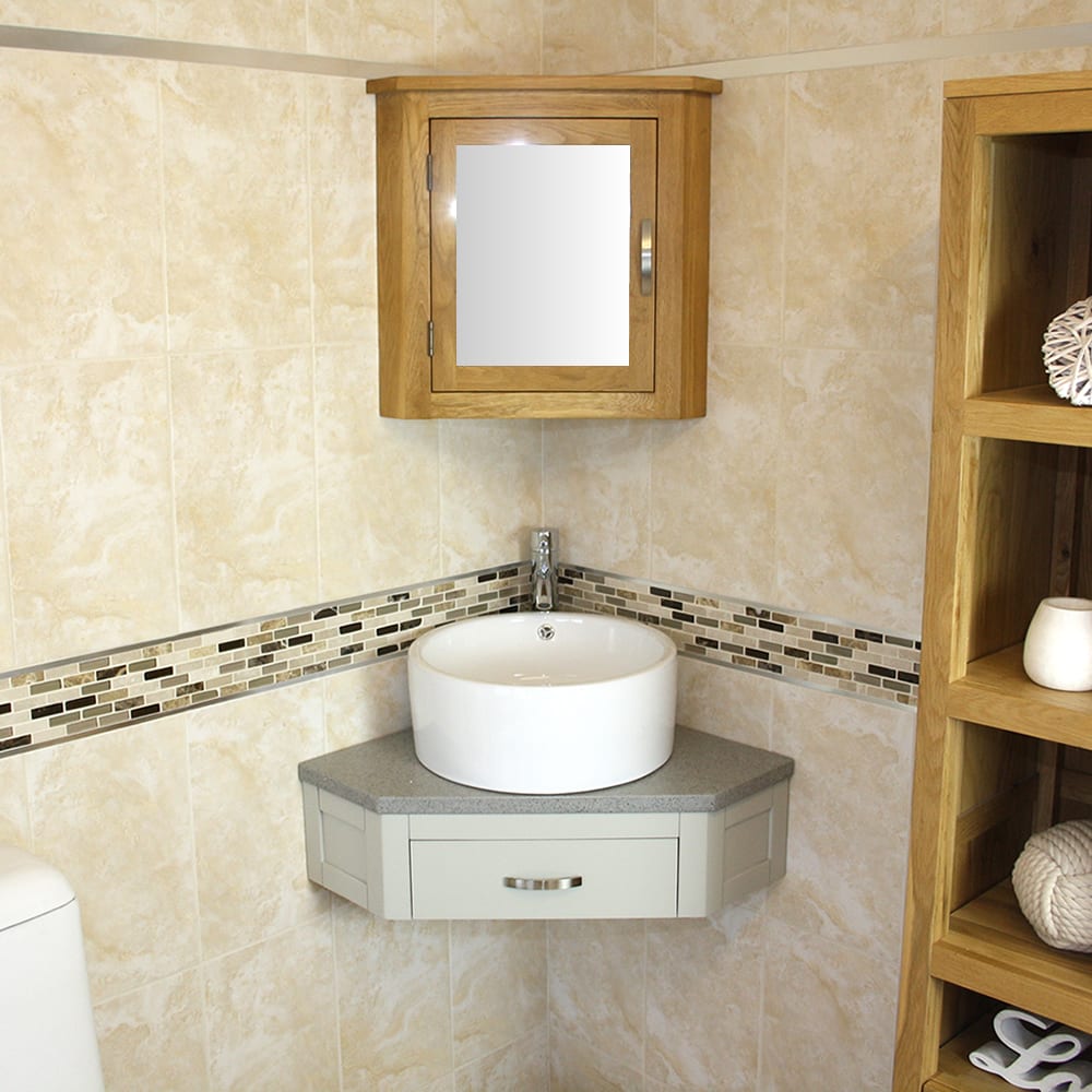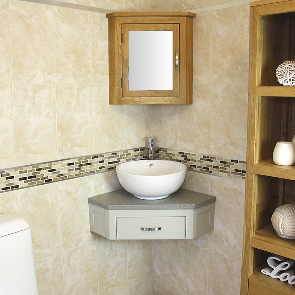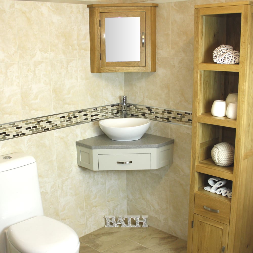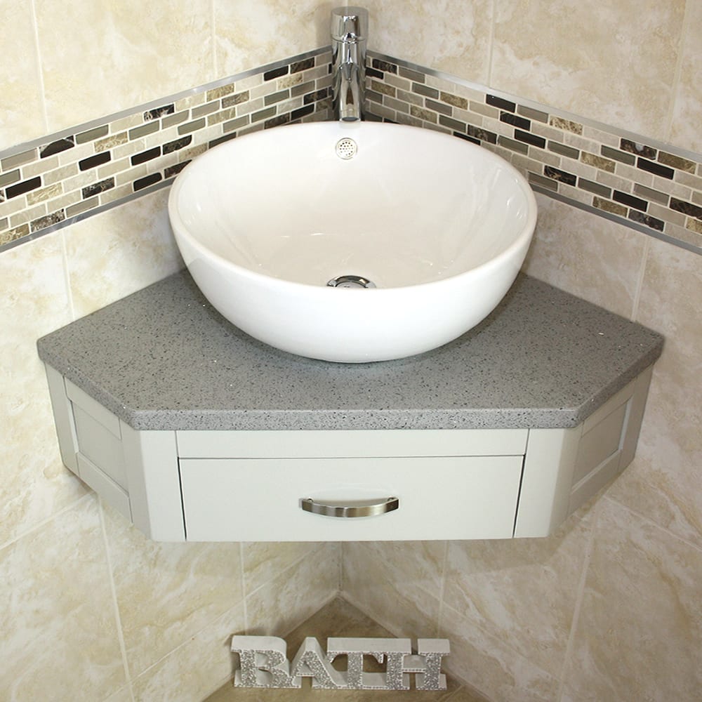 Corner Vanity Unit with Grey Quartz Top & Choice of Ceramic Basin