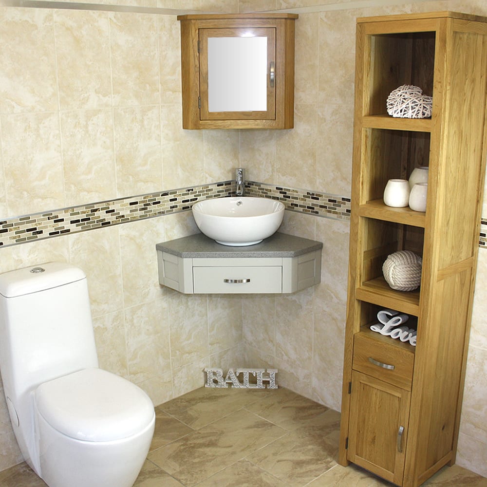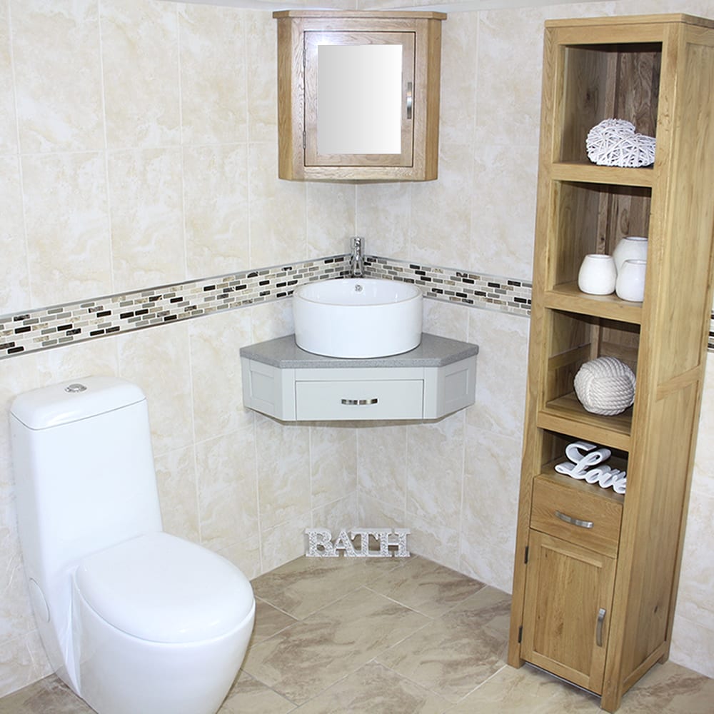 Mirrored corner cabinet and tall storage unit in image are not included but are optional extras, please see below.